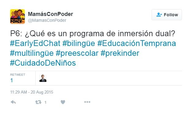 I had the opportunity to chat about bilingual education on Twitter last week with folks from MomsRising. It was an interesting—bilingual—conversation that spanned a range of topics from research to policy to practice. Here's an example:
