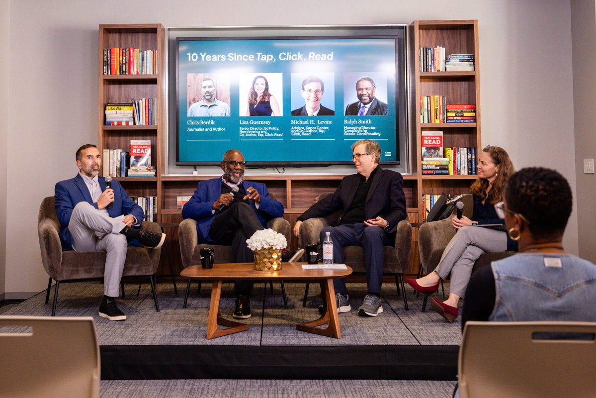 The first panel at the event featured the authors of Tap, Click, Read, Lisa Guernsey and Michael Levine, and CGLR managing director Ralph Smith. Smith recalled what CGLR was learning from parents in 2010. “In addition to managing their time, managing their resources, they were overwhelmed by the proliferation of tools and products online. They couldn't figure out where to start,” he said. That challenge became a key inspiration for Tap, Click, Read, which scanned what was a “digital wild west” of tools and apps, seeking evidence of quality and how they stacked up against the science of reading research.