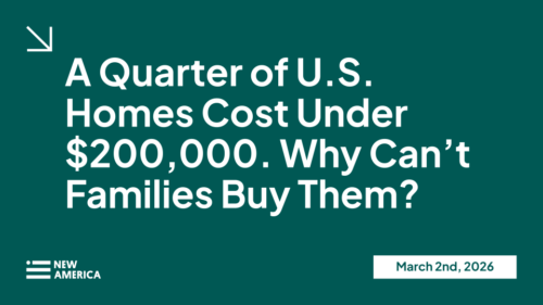 Please join us for an online event on Monday, March 2 at 1:00pm ET focused on opportunity presented by the 25 percent of existing homes across the United States—that is 22 million homes—that cost less than $200,000. These homes are a crucial source of affordable housing, particularly for first-time homebuyers and families of color, but  mortgage and repair financing failures have functionally locked these homes out of reach. Unlocking access to these homes is a powerful way to increase the supply of homes available for purchase today, even as we build more homes for tomorrow.