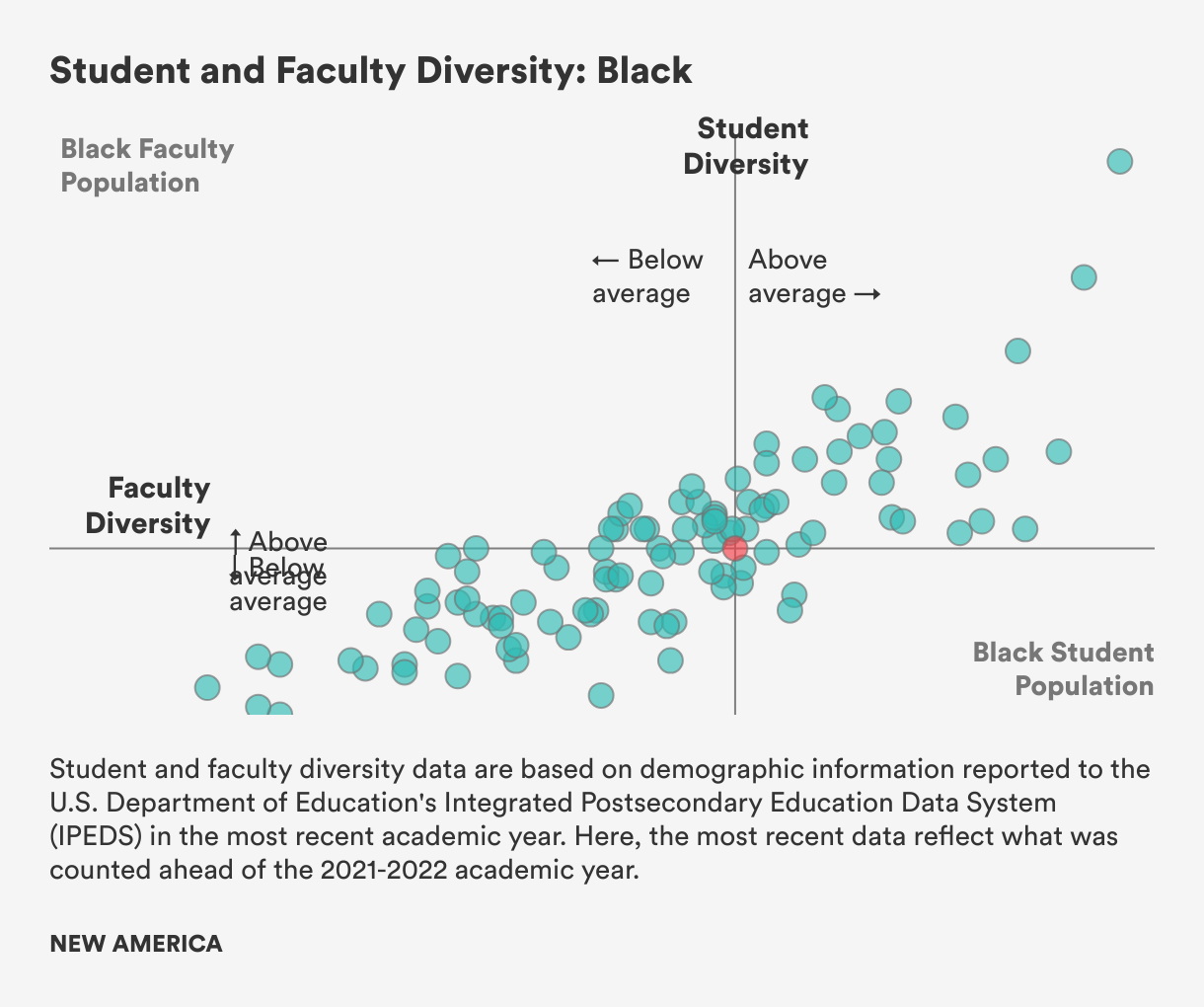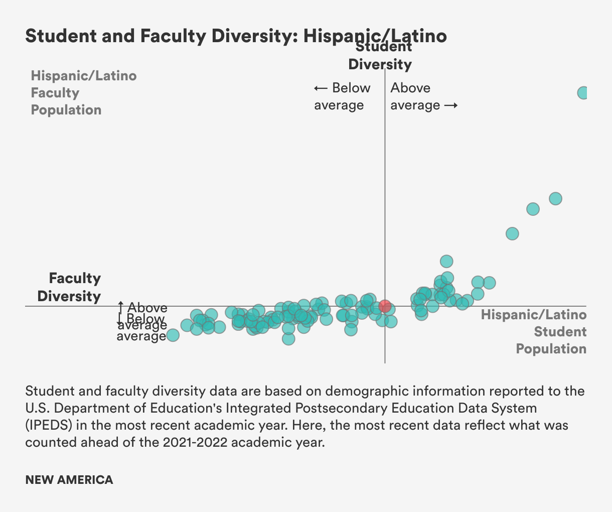 To better understand the state of faculty diversity at public research universities, New America recently developed data visualizations that pinpoint how these institutions compare to one another when considering their Black and Latino student and faculty populations.