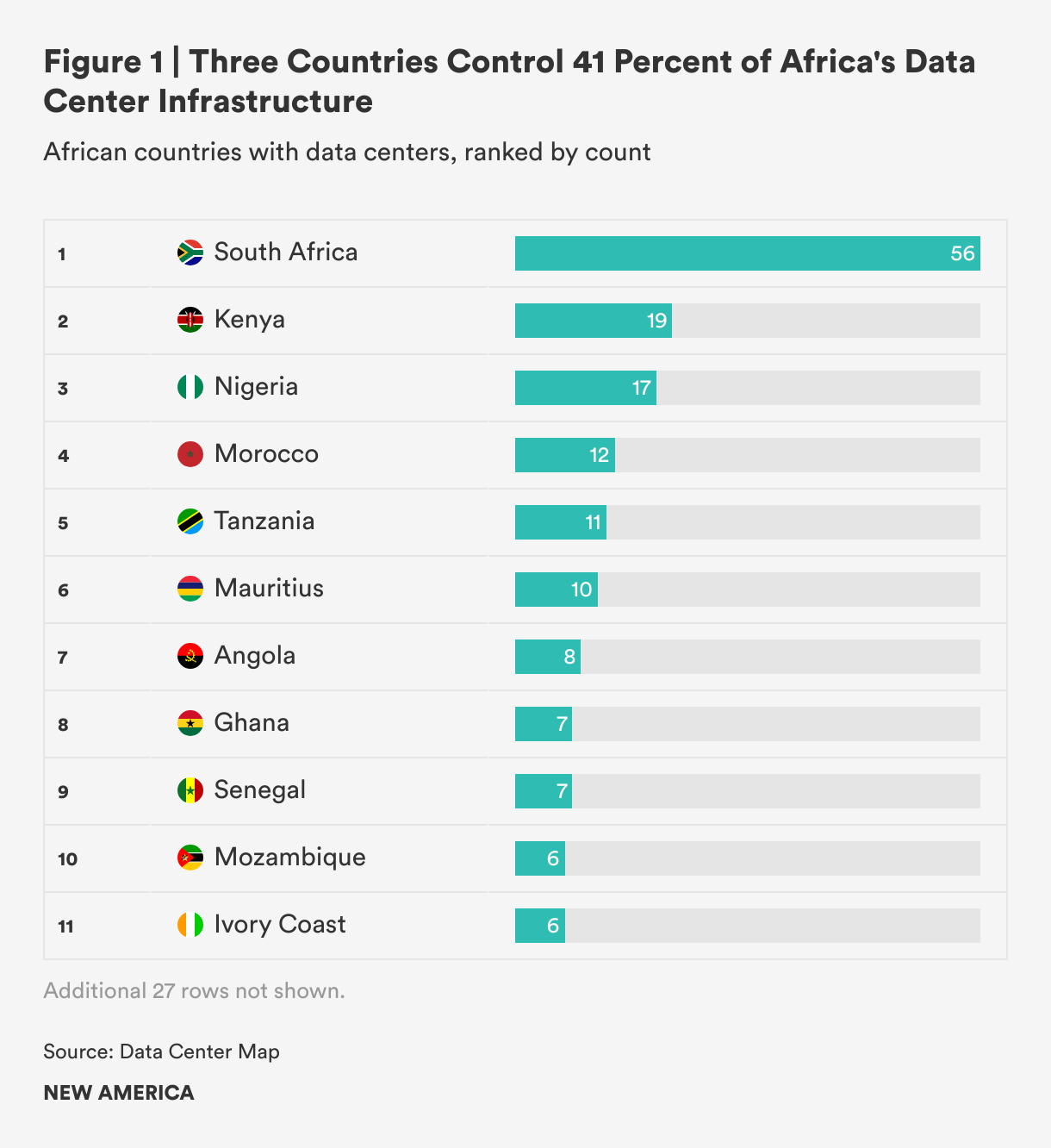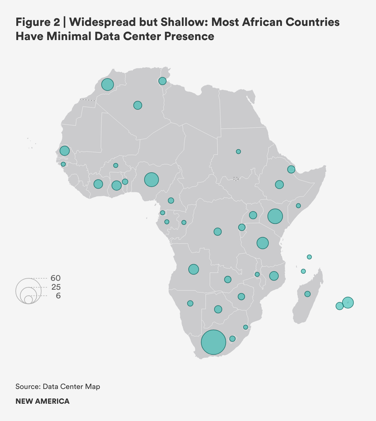 The rapid growth of data centers in Africa has turned infrastructure planning into a high‑stakes sovereignty issue. As of mid-2025, South Africa hosts 56 facilities, followed by Kenya with 19 and Nigeria with 17. The continent as a whole comprises 223 data centers across 38 countries. Decisions about where data is stored, who owns infrastructure, and which regulations apply have become flashpoints in debates over digital sovereignty and economic justice. To avoid repeating patterns of dependency, African governments must stop treating sovereignty and growth as opposing goals and instead coordinate regionally to strengthen their collective leverage with international investors.