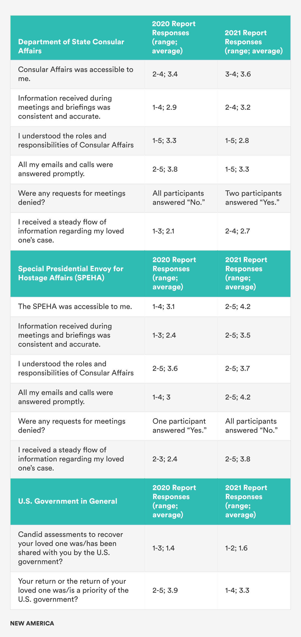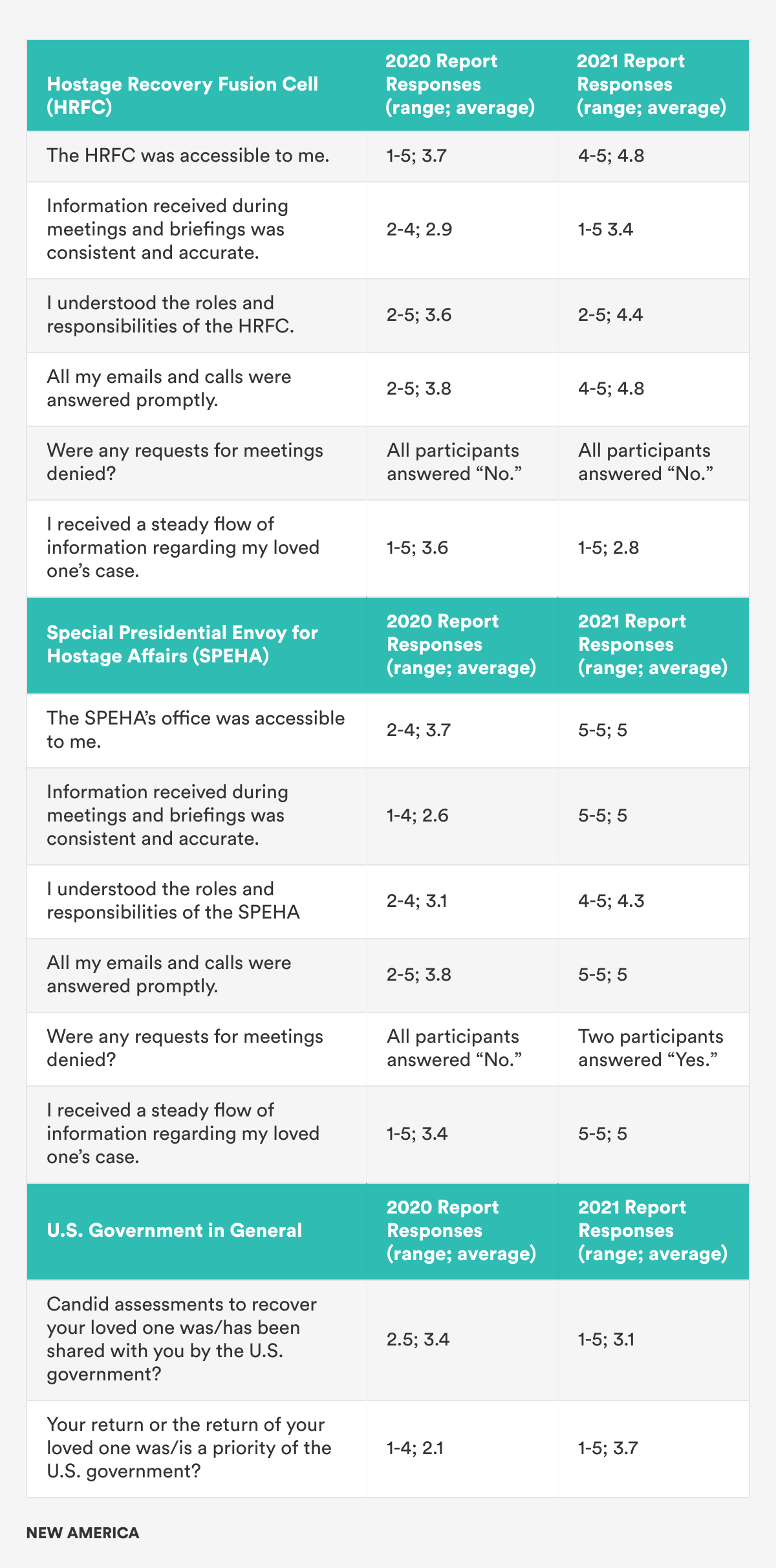 The U.S. government’s hostage policy review, led by Lieutenant General Bennet Sacolick of the National Counterterrorism Center (NCTC), conducted extensive interviews with former hostages and families of hostages who provided “courageous and generous contributions…and reinforced the critical importance of a comprehensive, coordinated, and coherent approach to hostage recovery efforts.”7 The poor experiences of the families of the ISIS hostages and their interactions with the U.S. government8 brought light to the need for a “specific emphasis on examining family engagement” as a part of the review of U.S. hostage policy.9