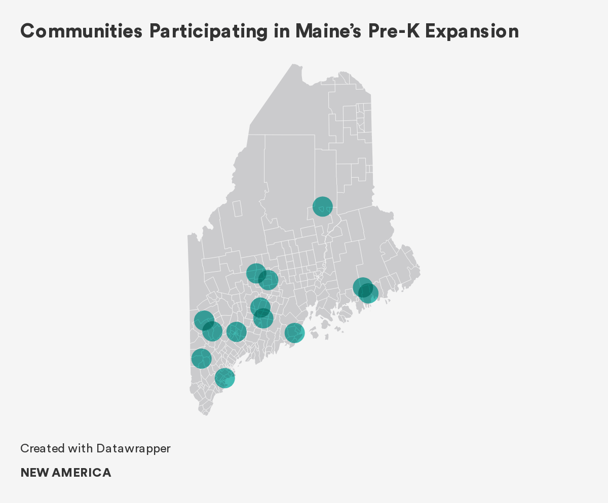 At the time this project was designed, Maine was approaching the fourth year of its federal Preschool Expansion Grant (the first round of these “PEG” grants). Thirteen communities had formed small teams that included different configurations of school and/or district leaders, pre-K and kindergarten teachers, and Head Start administrators. These teams had managed the expansion of high-quality preschool classrooms in each community.