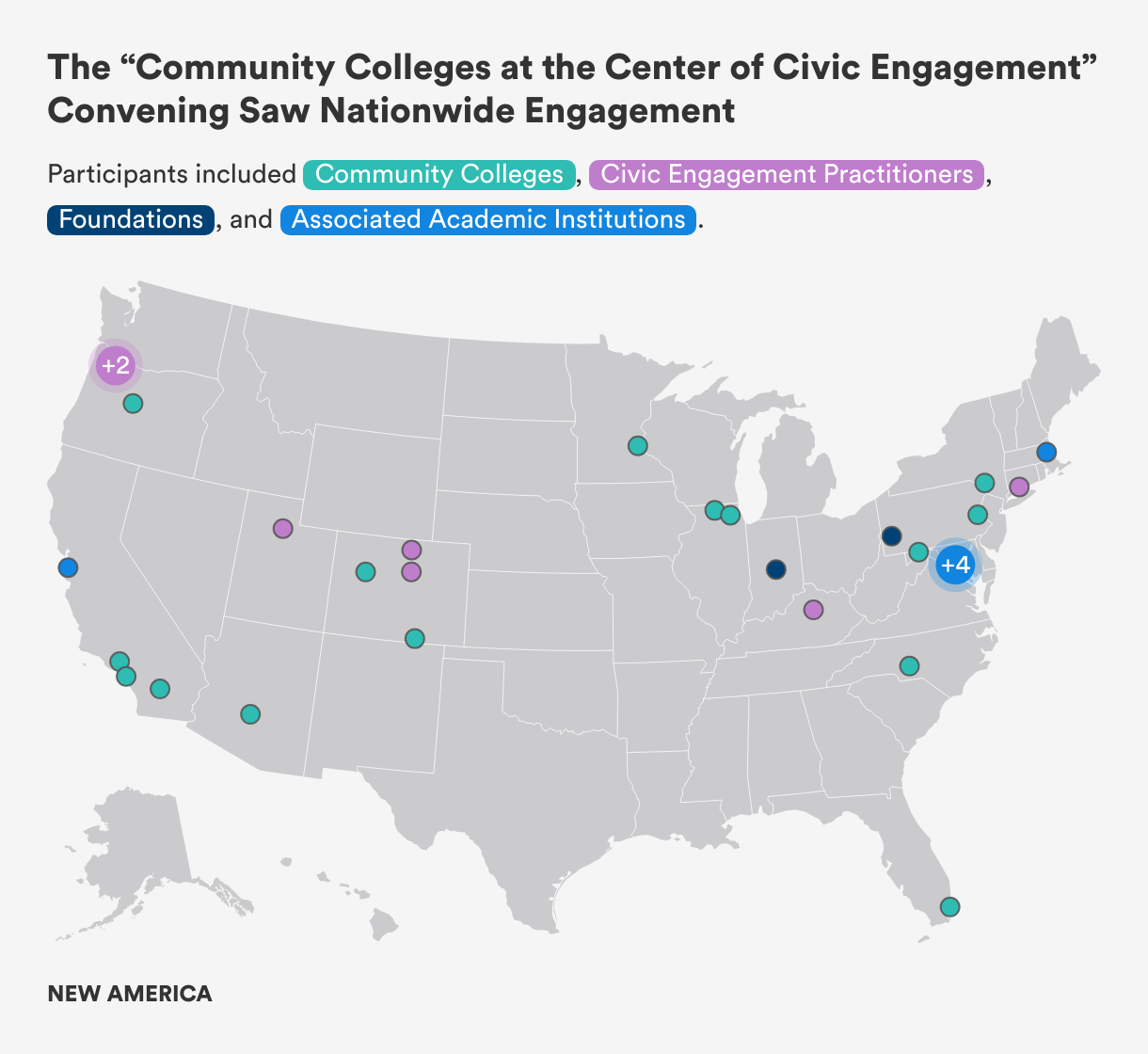 Many event participants felt that community colleges are especially well-positioned to support deliberative, place-based engagement because of their hyperlocal focus and their ties to regional economies.