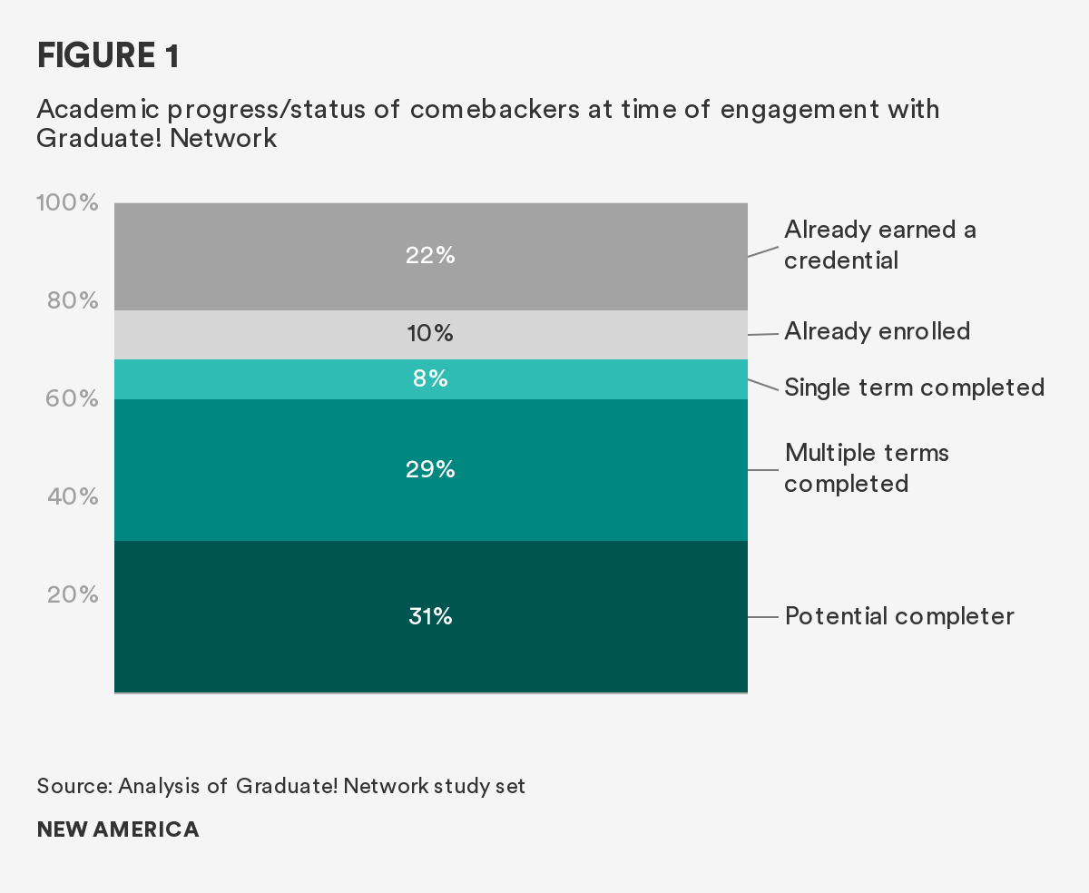 This joint report from the Graduate! Network and New America examines the journeys of determined individuals who get back on track, persevere, and earn their degree—known as comebackers—to show how policy makers and postsecondary institutions can design systems that support success for this new majority and better serve all students.