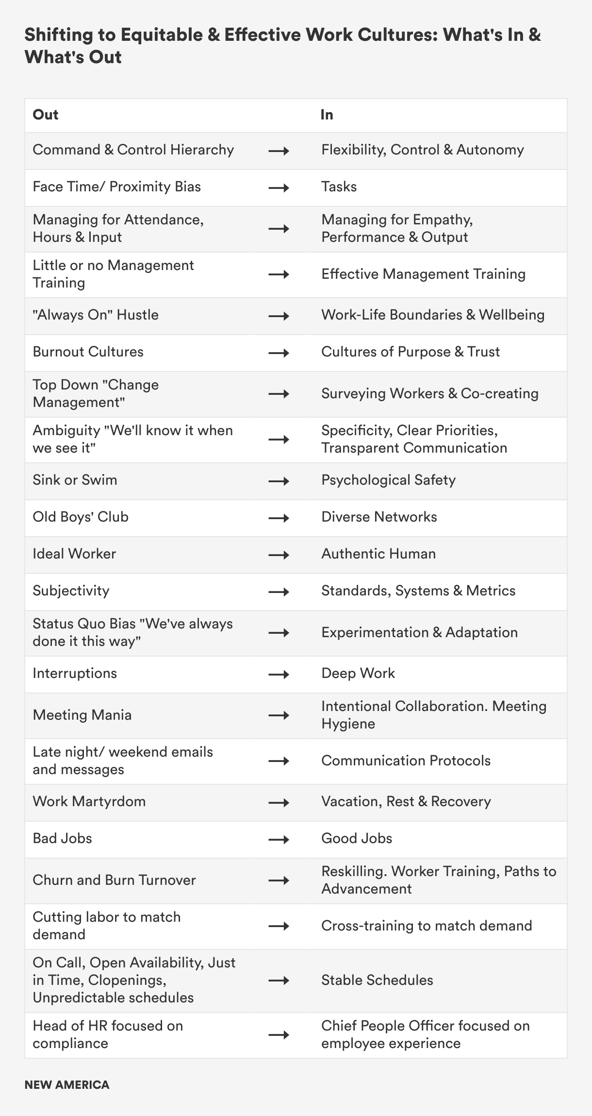 The author would like to thank the Better Life Lab Advisory Council for sharing their experiences and insights and for their continued partnership and support. A special thanks to Adrienne Penta, executive director of the Center for Women & Wealth at Brown Brothers Harriman, for suggesting I research and write a manager/ business-focused Toolkit in the first place. To Joan Williams, friend, mentor and pioneering thought leader in work-family justice and gender equity, for her insightful review, and for partnering with us on best practices for hybrid work as part of their Bias Interrupter series. And to Eve Rodksy, author of Fair Play and co-founder of CareForce, and Christy Johnson, co-founder of Artemis Connection, for sharing their expertise and offering valuable feedback on this Toolkit. I’m indebted to Maggie Driscoll of Blackbaud, Denise Shepherd of Deloitte and Megan Cornelius of Zasie for sharing their time and lessons learned for the case studies.Thanks, too, to Jerry Jacobs, a sociologist at the University of Pennsylvania, respected work-family scholar and wonderfully generous colleague. I’m grateful to New America CEO Anne-Marie Slaughter for her vision, guidance and always spot-on suggestions, as well as my New America colleagues at the Center on Education and Labor and New Practice Lab for sharing resources. I’m thankful for the creativity, support and patience of the current and former members of New America’s Events, Production, Editorial & Communications team, in particular Joe Wilkes, Naomi Mordoch Toubman, Samantha Webster, Joanne Zalatoris and Maria Elkin. And as always, I am deeply grateful for my inspired and inspiring Better Life Lab team and fellows, Haley Swenson, Vicki Shabo, Ai Binh Ho, Sade Bruce and Rebecca Gale.
