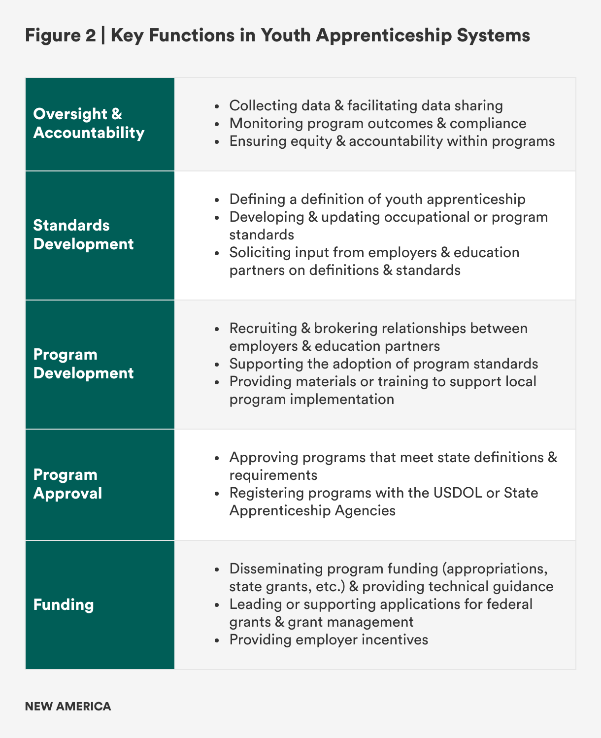 Figure 5 summarizes Wisconsin’s approach to youth apprenticeship governance and the key system functions.