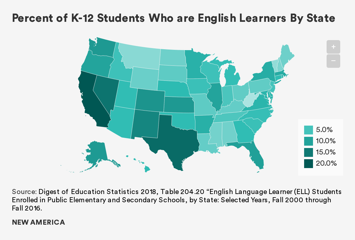 English learners (ELs) are a growing segment of the U.S. student population — now making up nearly 10 percent of K-12 enrollment and over 30 percent of the young child (birth to 8) population. Despite the size of the EL population, few education policies are designed to address and cultivate the considerable assets that ELs bring to the classroom. To help address gaps in policies and practice, New America's EL team has created this resource hub to provide to provide a starting point for understanding a variety of issues related to ELs and their education.
