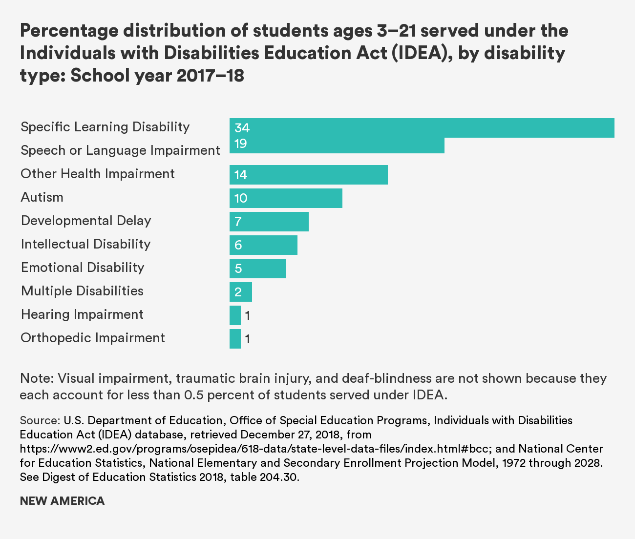 - U.S. Department of Education, National Center for Education Statistics, Digest of Education Statistics 2018, Table 204.30, <a href="source">source">source; The National Council on Learning Disabilities has a host of accessible resources on SLD and other learning and attention issues at its site Understood.org.