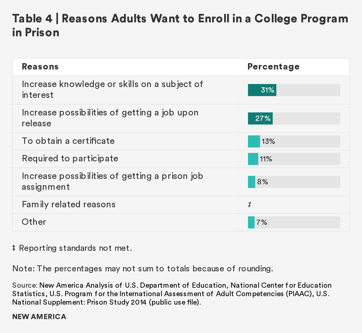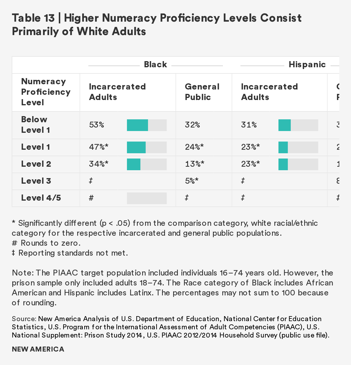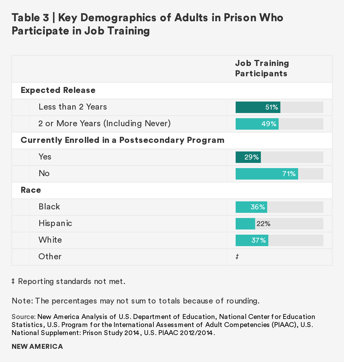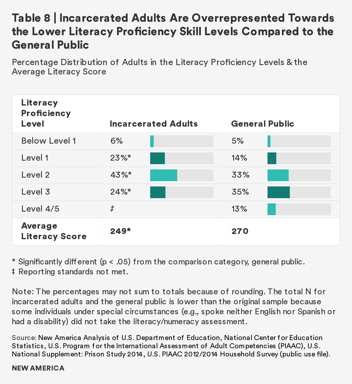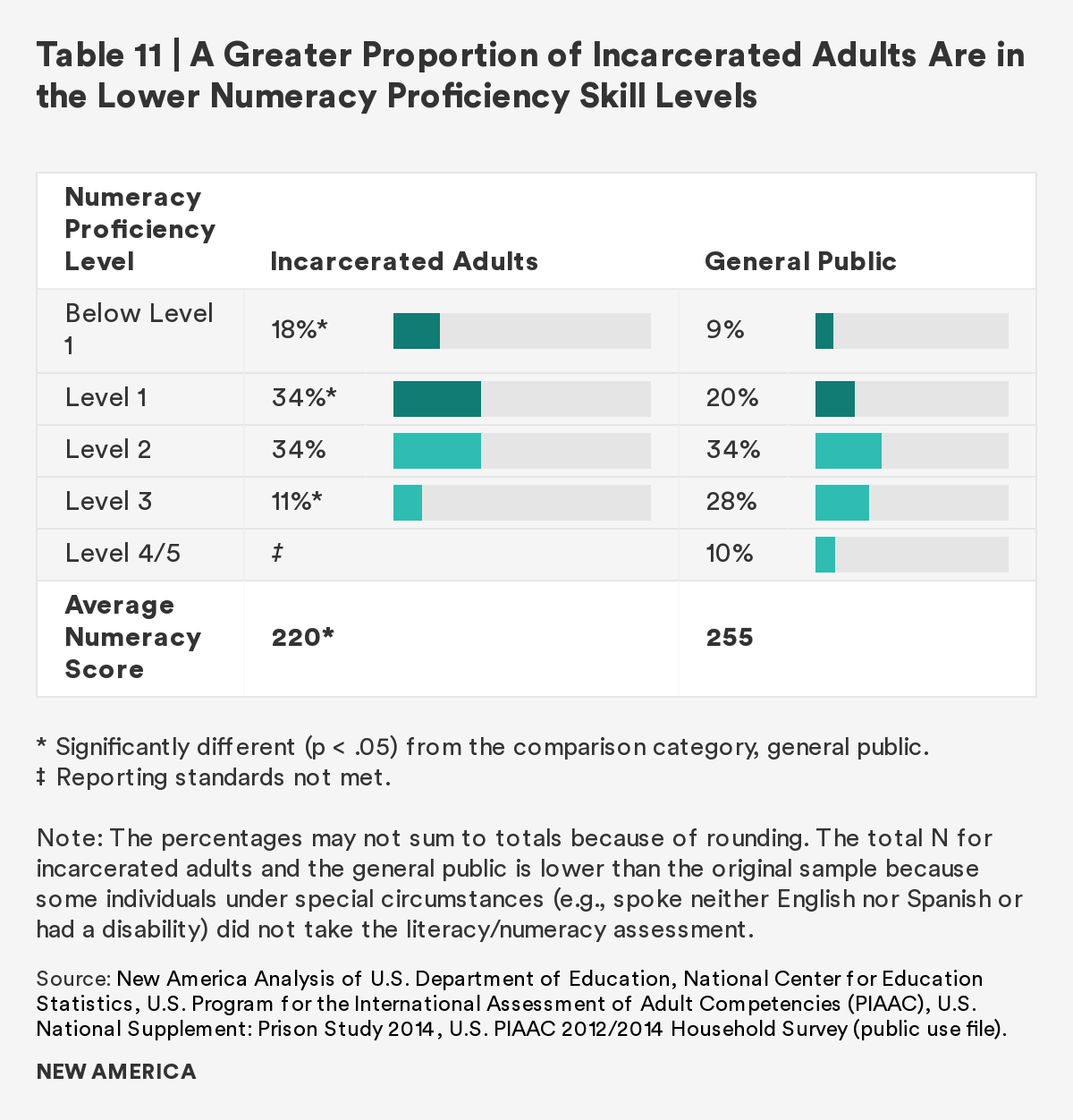 As the overwhelming majority of those in U.S. prisons will rejoin society, it is imperative to prepare individuals to transition with effective rehabilitative programs. This report finds that although there is a gap between incarcerated adults and the general public in both literacy and numeracy skills, completion of a postsecondary credential and participation in job training ameliorates the gap. Those who participate in and/or complete these correctional programs have comparable literacy and numeracy scores to the general public. Furthermore, regardless of time to reentry, all incarcerated adults show interest in, participate in, and complete these programs at similar rates.