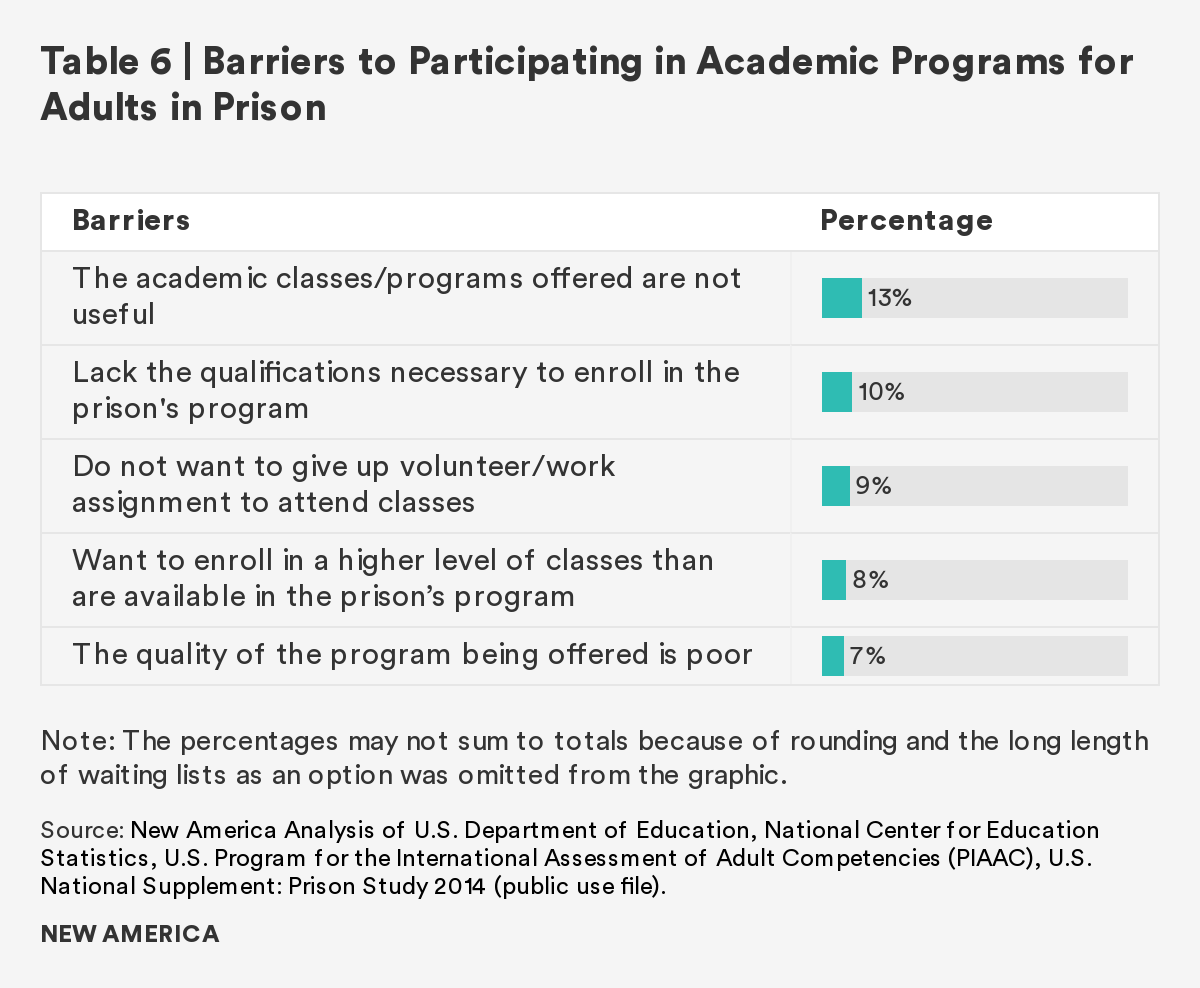 The author would also like to thank the American Institutes for Research (AIR) for its assistance with the project, Dr. Eugenio Gonzalez for serving as an external reviewer, the correctional facilities that welcomed her for observation, formerly and currently incarcerated students, instructors, federal and state correctional administrators, program facilitators, and experts in the field who committed their time and shared their insights.