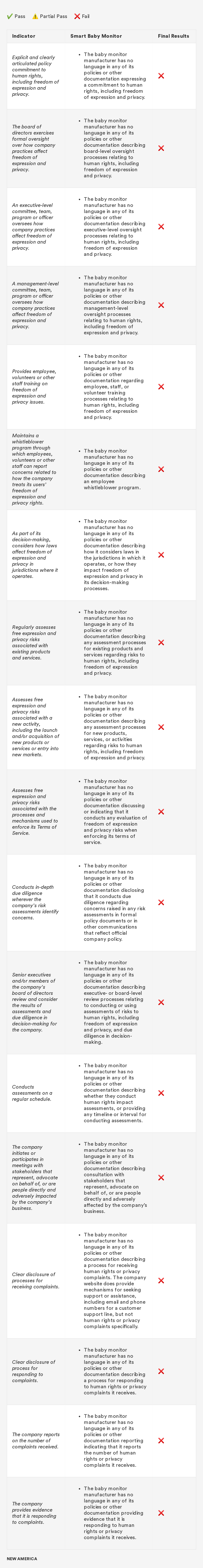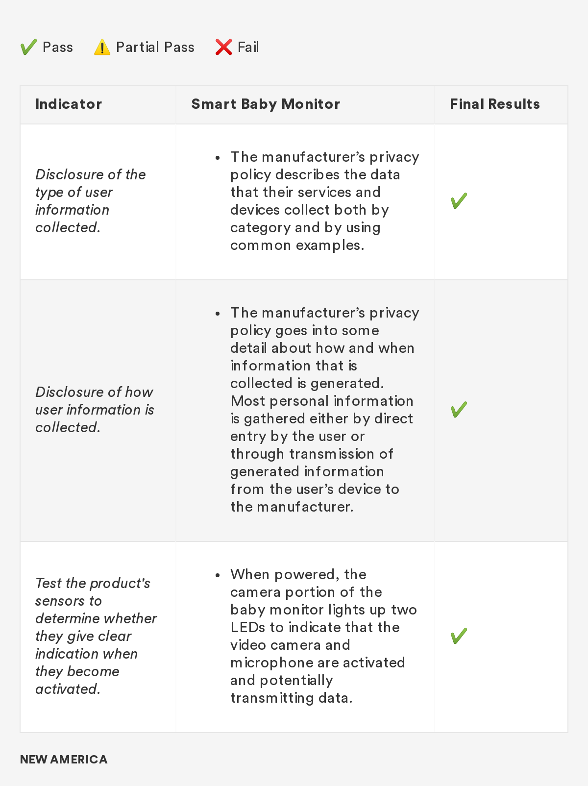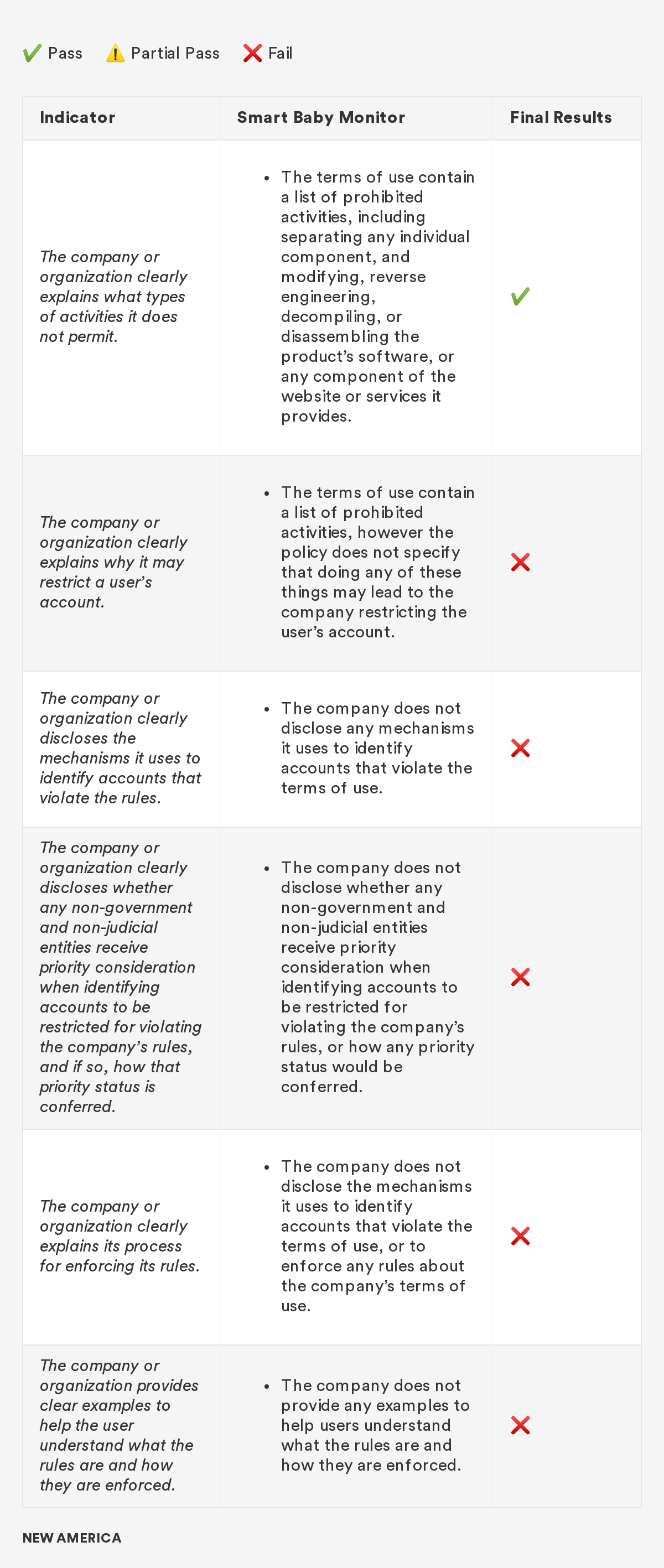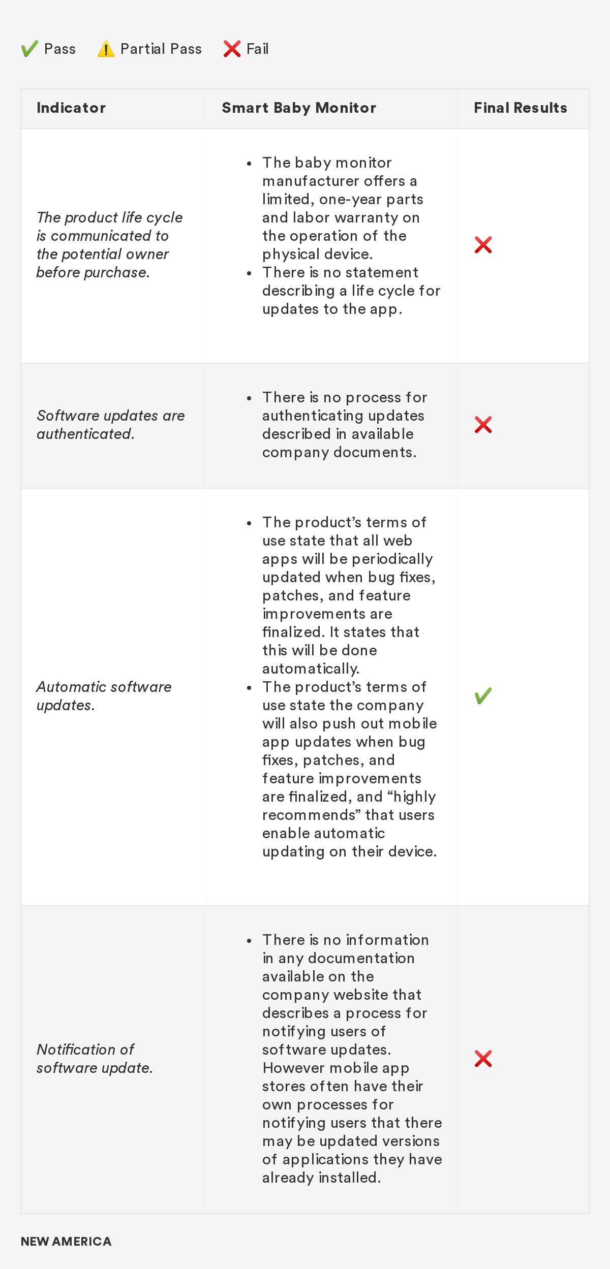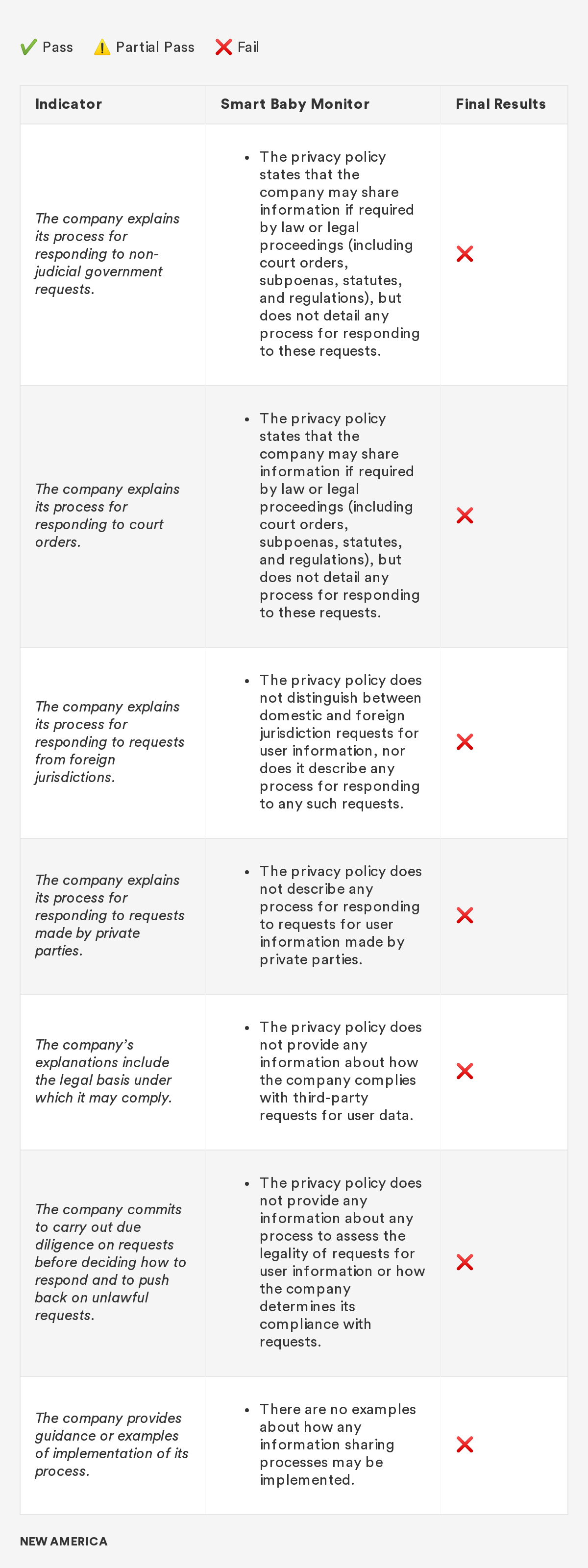 In 2018, New America’s Open Technology Institute (OTI) launched a project to educate people about the Digital Standard,⁠ a new framework for evaluating the privacy and security of internet-connected consumer products and software. The Standard was developed by a group of organizations, including Ranking Digital Rights, in collaboration with Consumer Reports. Building off this work, we're selecting a few representative products and apps and putting them through the tests that the Digital Standard describes. Our methodology will include exactly how we judged each indicator, including what information was needed in order to measure whether the indicator was met, where we looked for it and where we found it, and how we interpreted the inevitable vagueness and edge cases. Below you'll find information related to the third product in this series: a smart baby monitor.