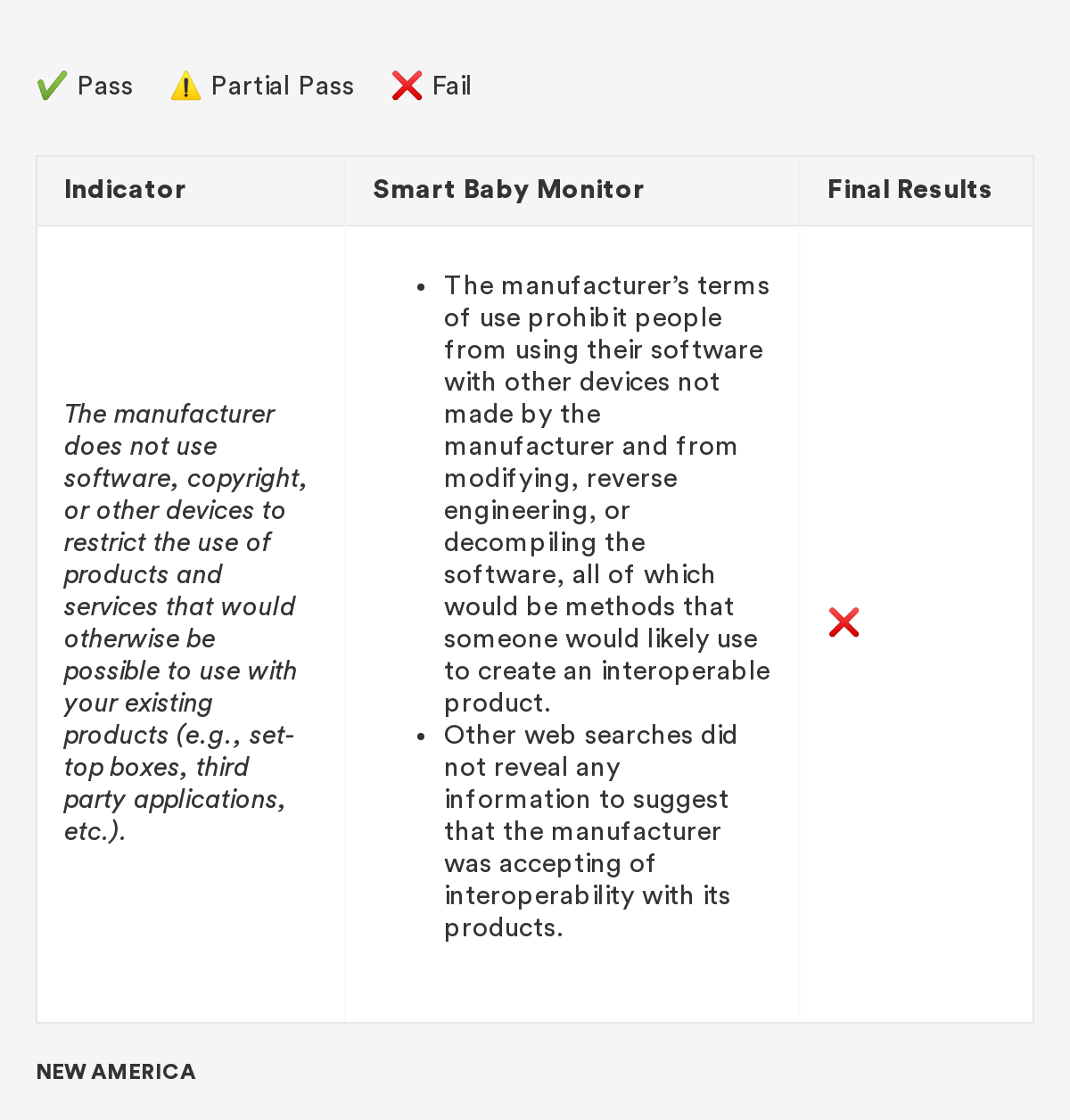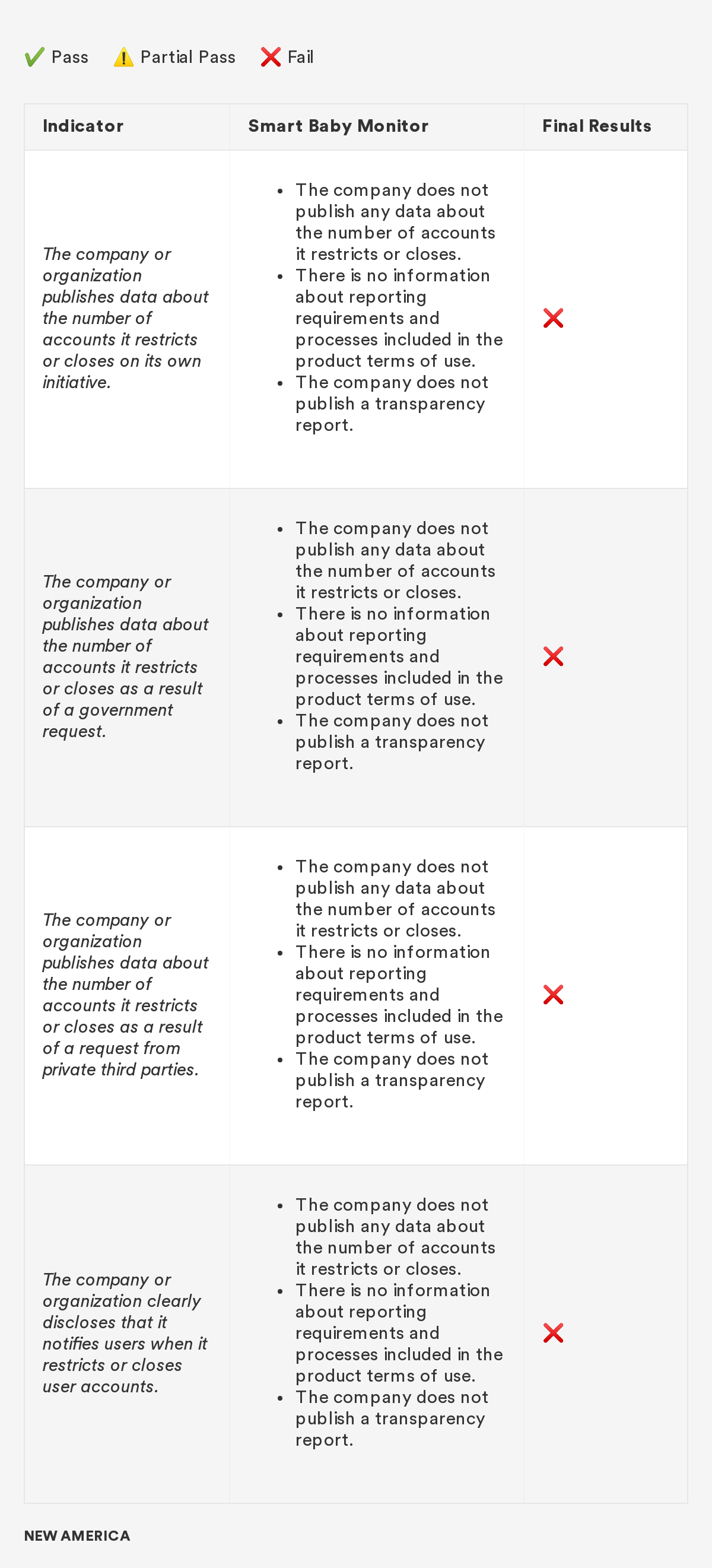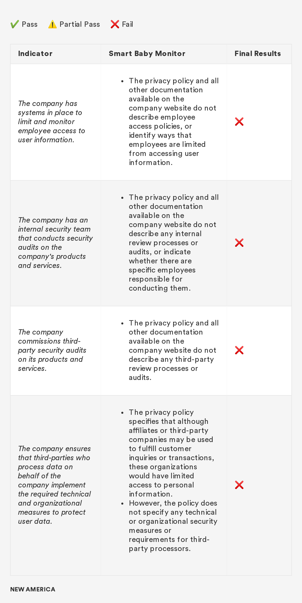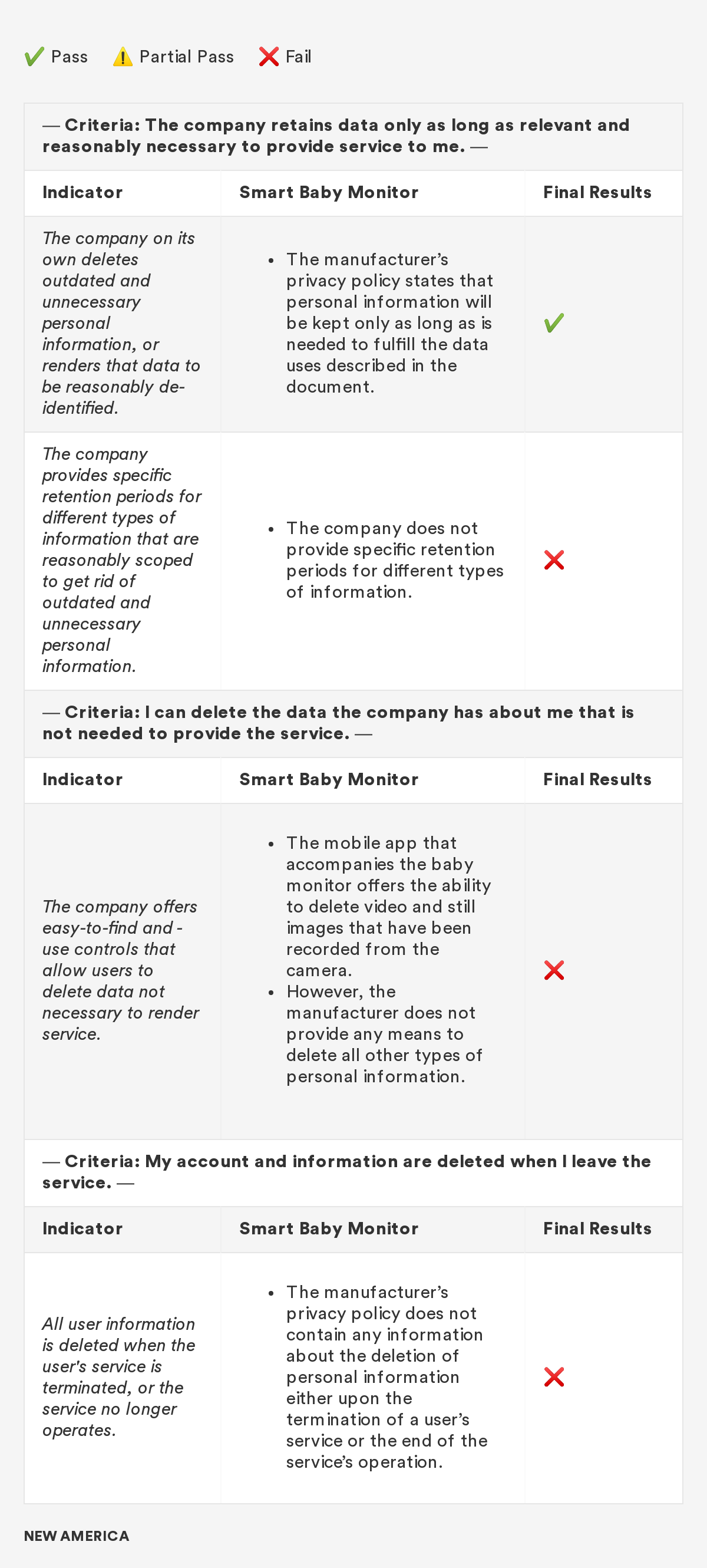 In 2018, New America’s Open Technology Institute (OTI) launched a project to educate people about the Digital Standard,⁠ a new framework for evaluating the privacy and security of internet-connected consumer products and software. The Standard was developed by a group of organizations, including Ranking Digital Rights, in collaboration with Consumer Reports. Building off this work, we're selecting a few representative products and apps and putting them through the tests that the Digital Standard describes. Our methodology will include exactly how we judged each indicator, including what information was needed in order to measure whether the indicator was met, where we looked for it and where we found it, and how we interpreted the inevitable vagueness and edge cases. Below you'll find information related to the third product in this series: a smart baby monitor.