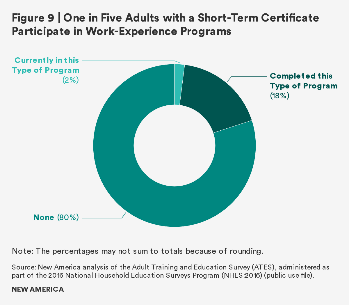 - Defined as requiring 40–479 hours to complete. New America analysis of Adult Training and Education Survey (ATES), administered as part of the 2016 National Household Education Surveys Program (NHES: 2016; public use file).