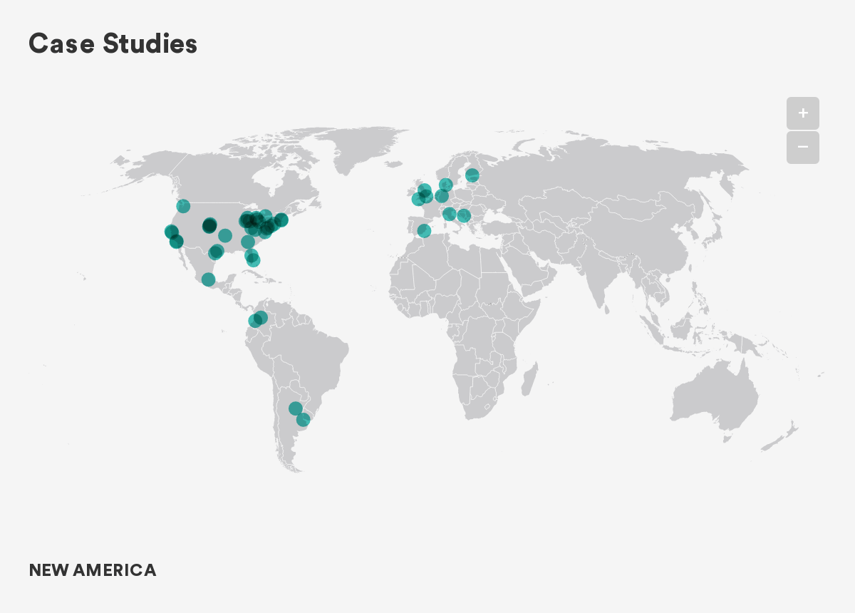 This report would not be possible without the valuable feedback and research help from Maresa Strano and Monica Estrada Arias, who helped collect background information on approximately 50 cities and contributed to early drafts. Thanks also to Mark Schmitt for his guidance and feedback, and to our communications team—Maria Elkin, Joanne Zalatoris, Lulin McArthur, Joe Wilkes, and Alison Yost—for their help with this report.