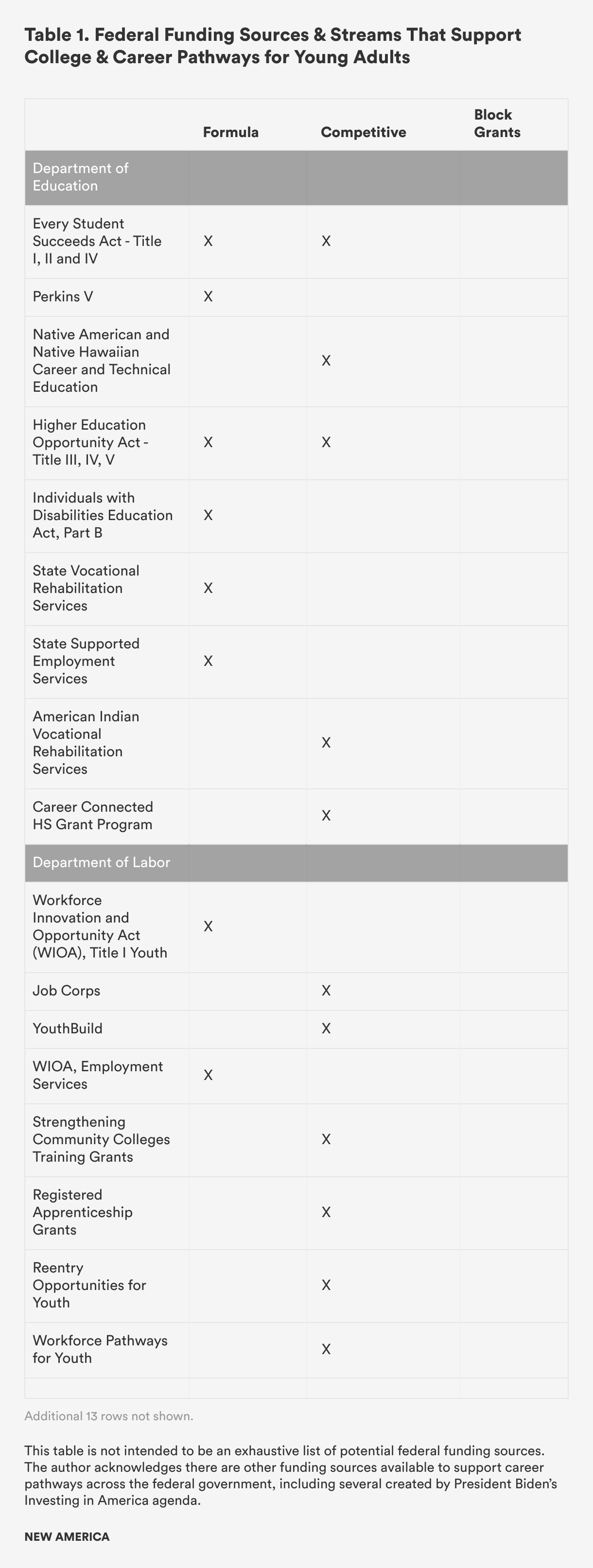 This blog is the first in a five-part series from New America authors exploring how federal funding can support efforts to better align our systems of education and work in support of career pathways for young people. This project is one of several publications from organizations that were convened by Bellwether to discuss challenges and opportunities in federal pathways policy in 2023 and 2024. You can read publications from other participating organizations here.