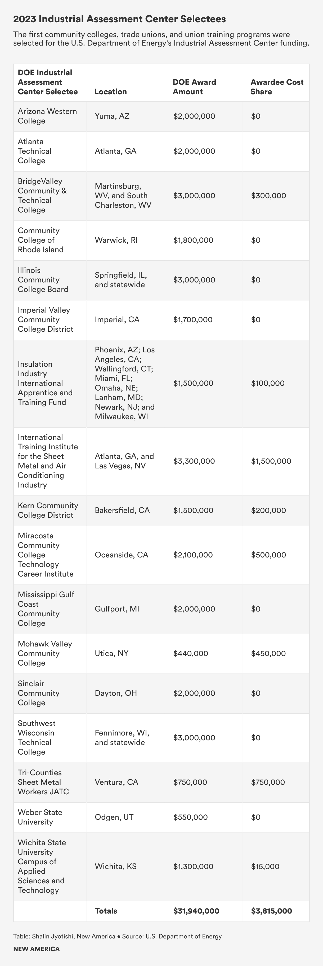 Since most community colleges and trade unions will be new to IACs, the DOE is encouraging applicants to consider partnerships with existing IAC hosts, including the community colleges and trade unions that were selected for the 2023 IAC awards listed below.
