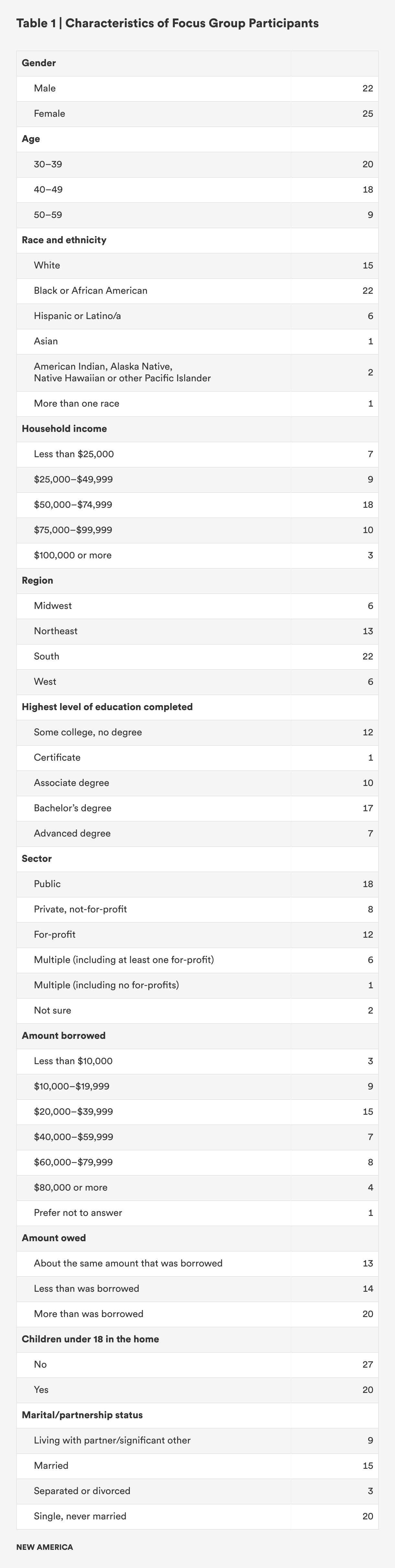 In the summer of 2022, New America managed focus groups with almost 50 borrowers from across the country who reported holding federal student debt and defaulting on their loans before the COVID-19 pandemic. Focus group participants felt hopeless about their student loans, and they had good reason to feel this way. They entered the default system, which damaged their finances and eroded their economic security. Before they defaulted, many did not receive the benefits promised by higher education and were poorly served by a complex student loan repayment system, experiences that contributed to ongoing financial instability.