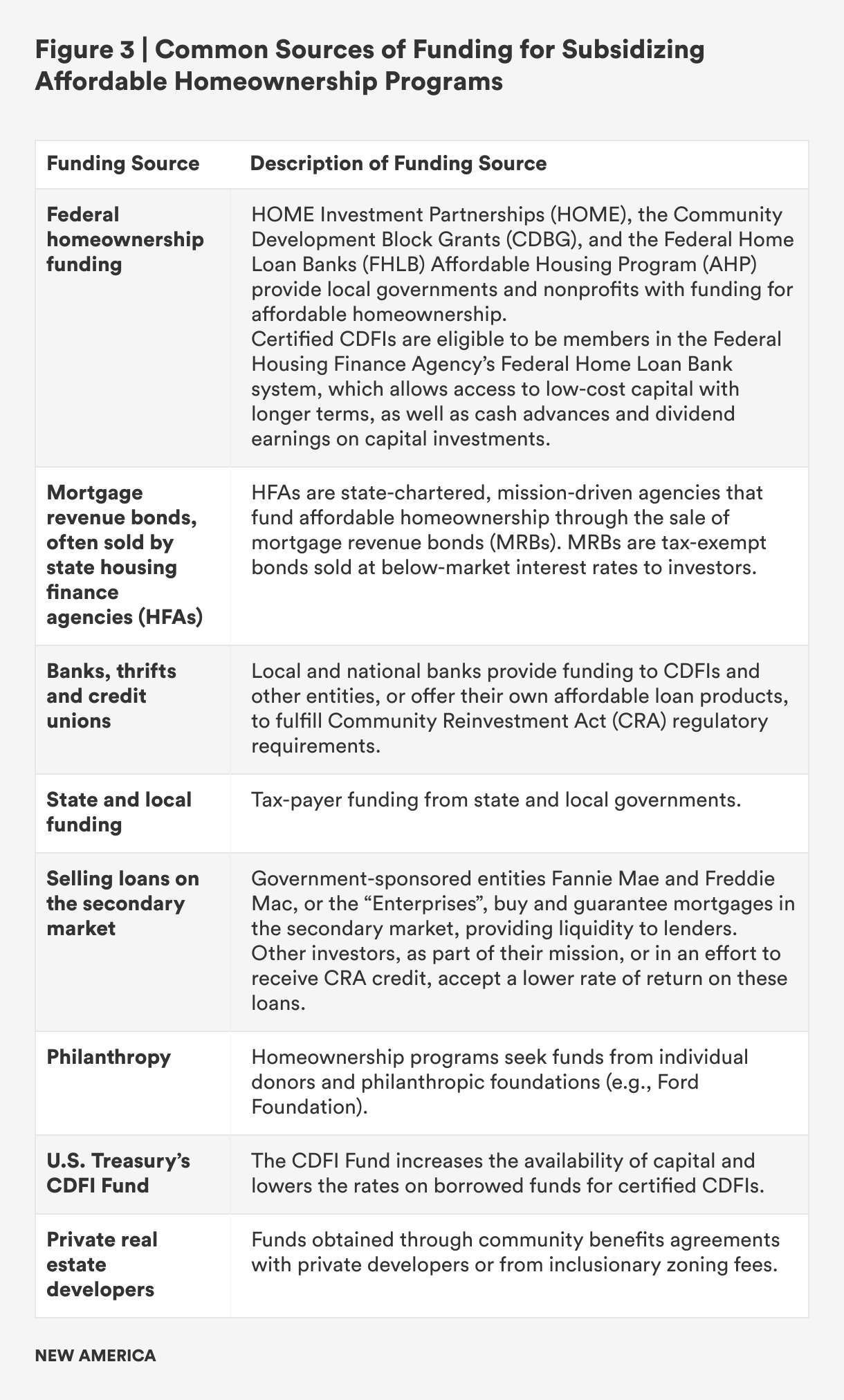 To cover the cost of subsidizing homeownership, programs often pool funding from different sources, the most common of which are listed in Figure 3.