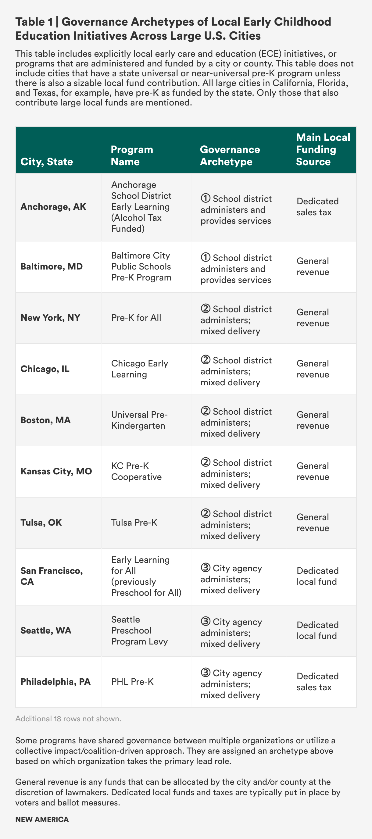 More and more cities and counties fund and run their own early childhood programs, but each seems to operate them in its own unique way. While the opportunity to design and build a new program can be inspiring, the process itself can be painstaking and fraught with second guesses. Unfortunately, there are few resources to help policymakers and administrators decide how to set up a new early childhood program. This resource provides foundational information about the design and governance of existing early childhood programs and will help guide the field toward more efficient, effective governance designs. For existing program leaders, this resource offers insight on how to more effectively navigate and advocate within the constraints of their own governance structure.