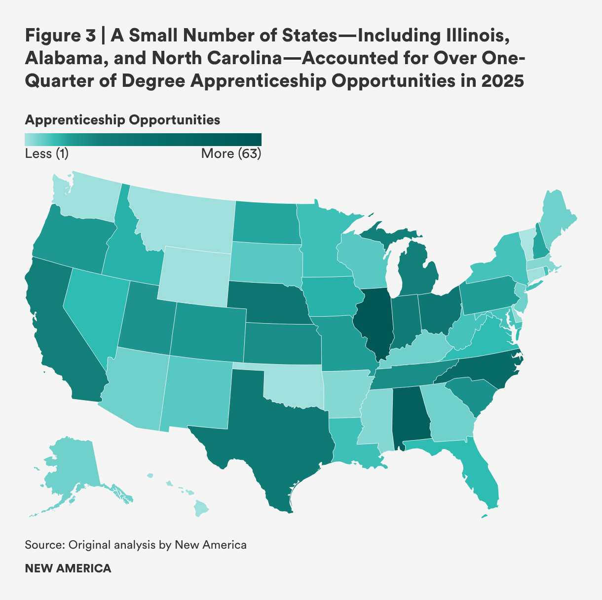 Many Degree Apprenticeship Opportunities Are Concentrated in Just Three States