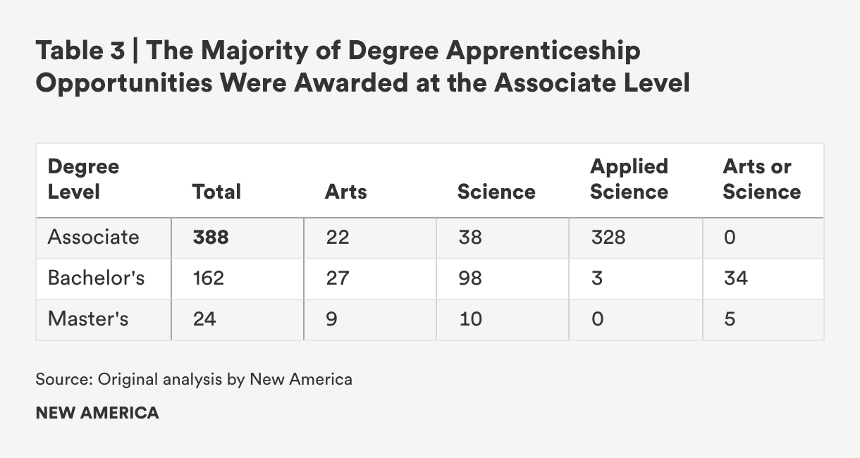 Most Degree Apprenticeship Opportunities Are Associate Degrees, Chiefly Associate of Applied Science Degrees