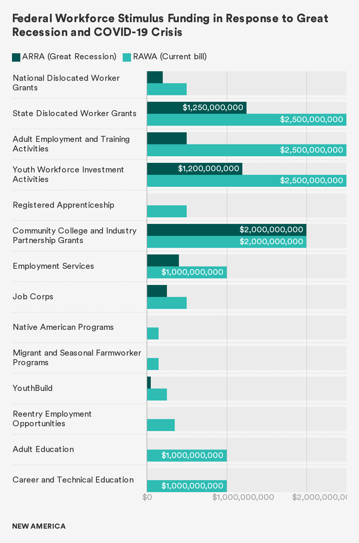 Programs designed for specific vulnerable populations, which were not funded during the Great Recession, would get a boost under RAWA, including Native Americans ($150 million), Migrant and Seasonal Farmworker ($150 million), and Reentry Employment Opportunities ($350 million) programs.