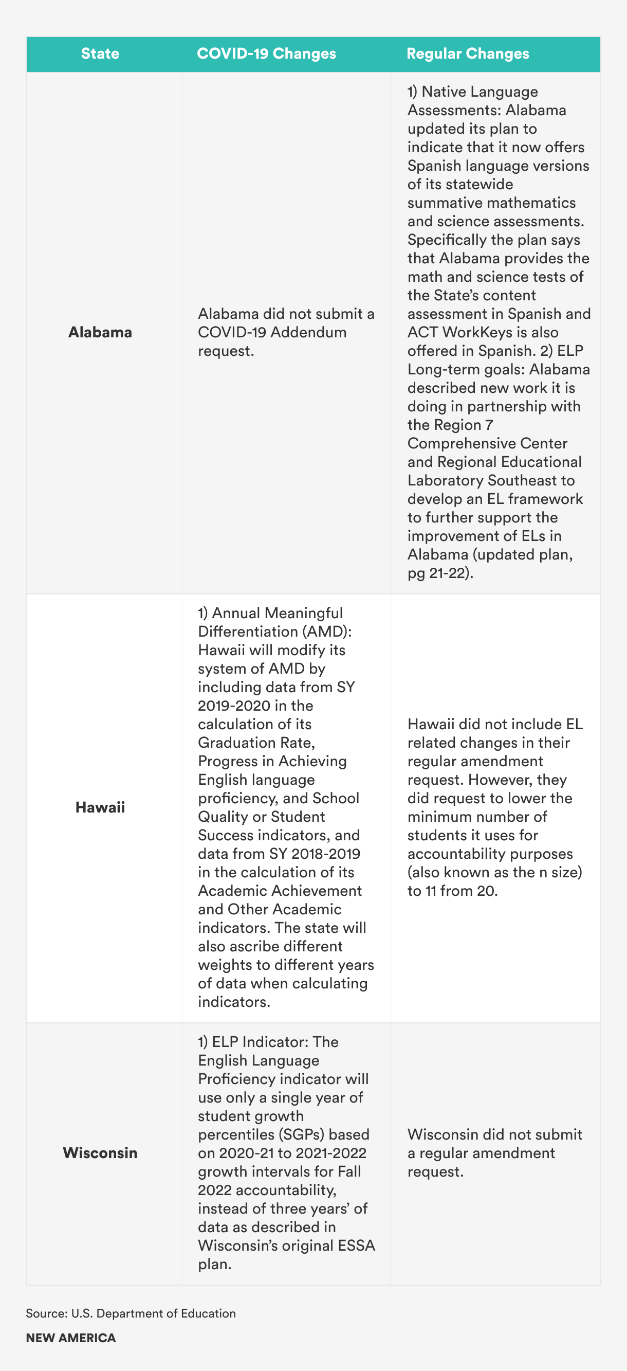 Table 1. Alabama, Hawaii, and Wisconsin EL-related Changes