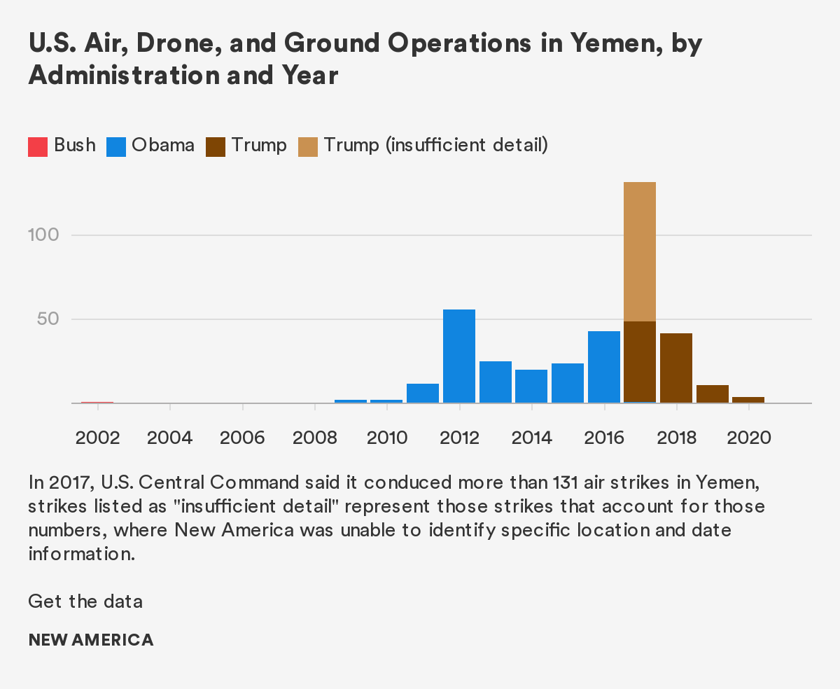 - Peter Bergen, David Sterman, and Melissa Salyk-Virk, “America’s Counterterrorism Wars: The War in Yemen” (New America), accessed September 4, 2020, source">source