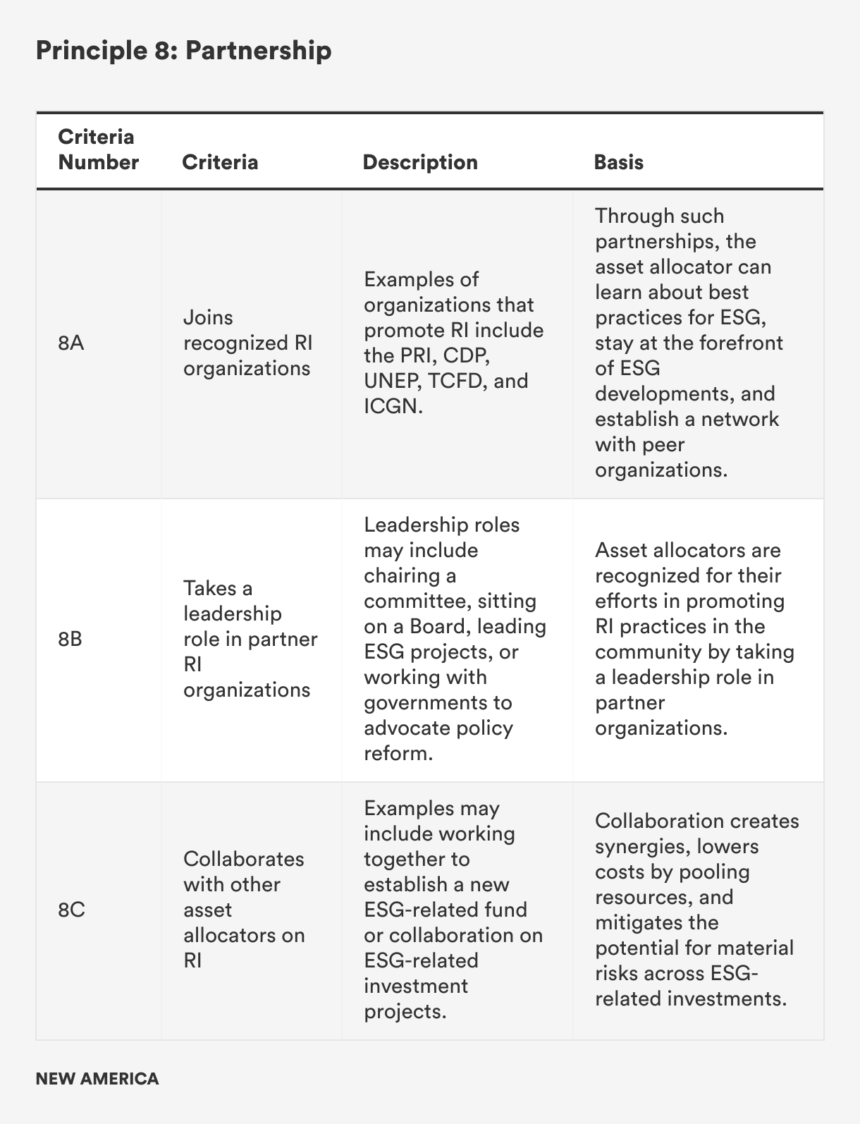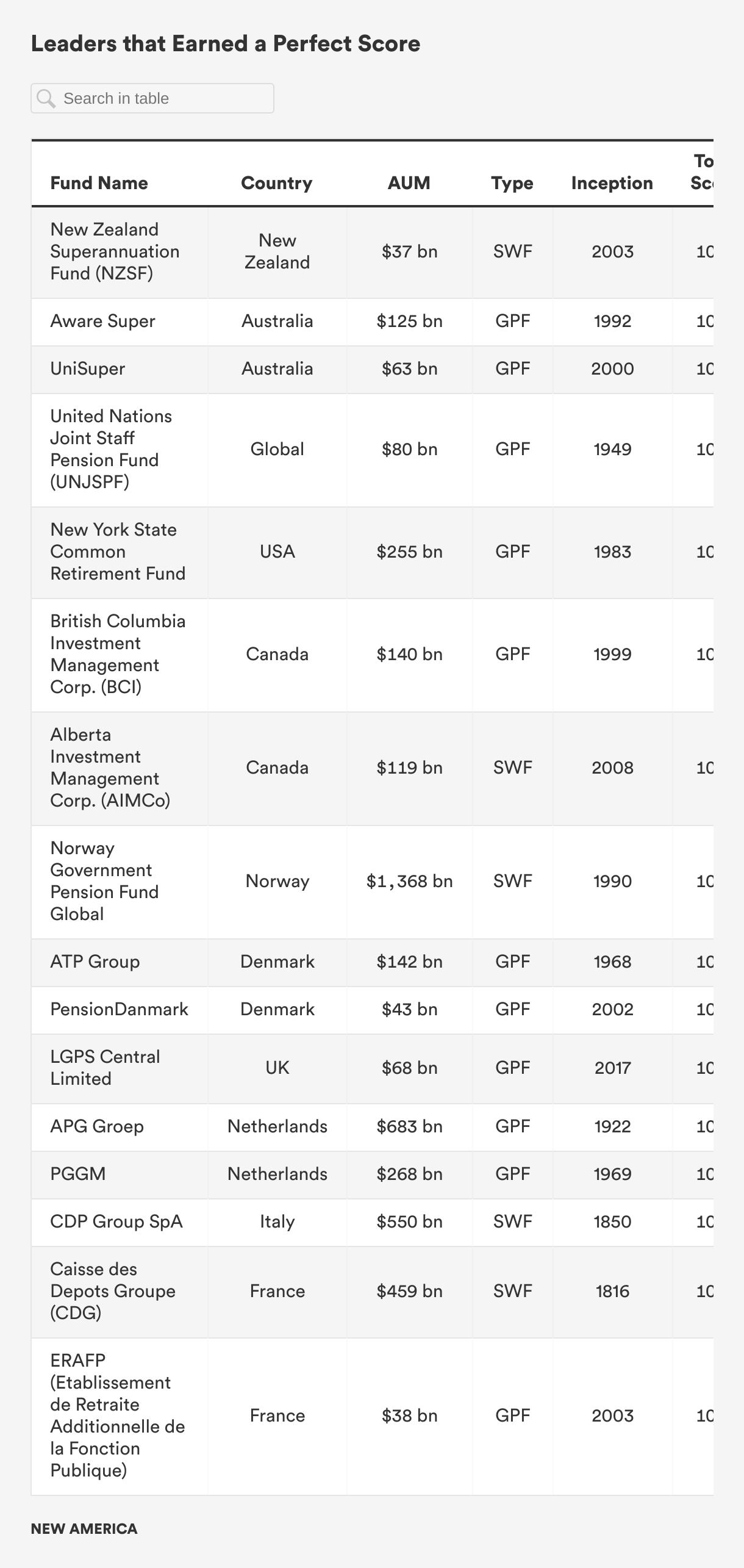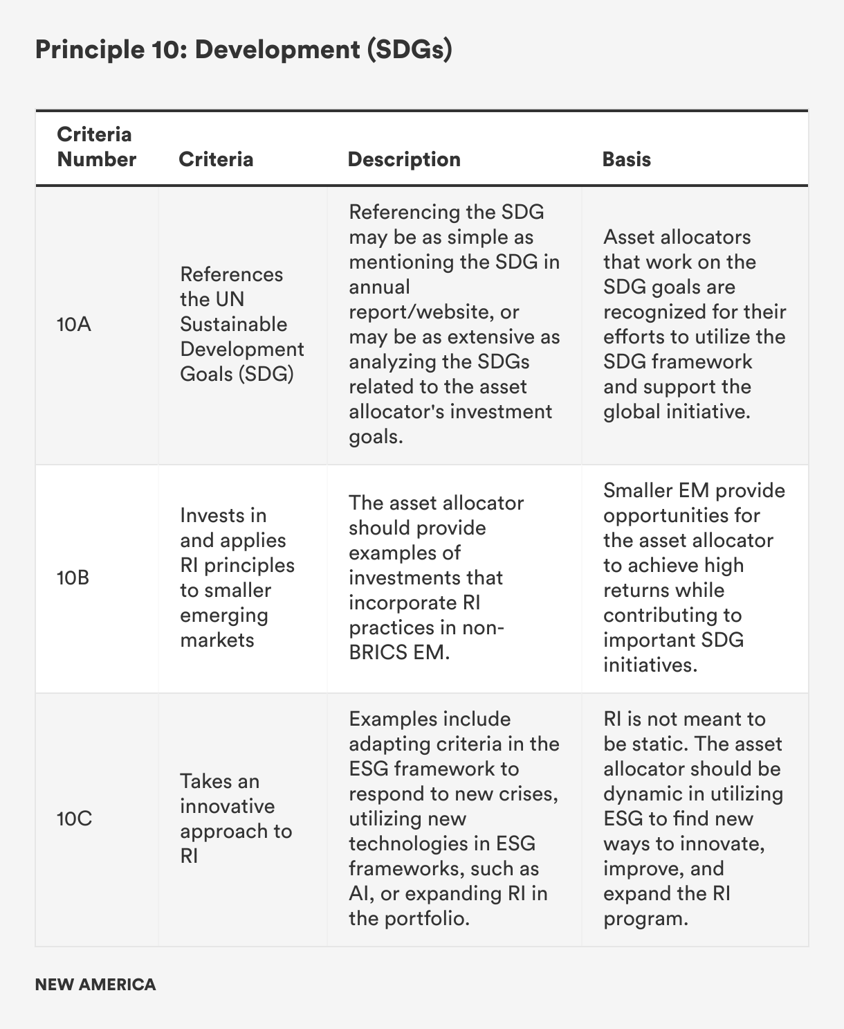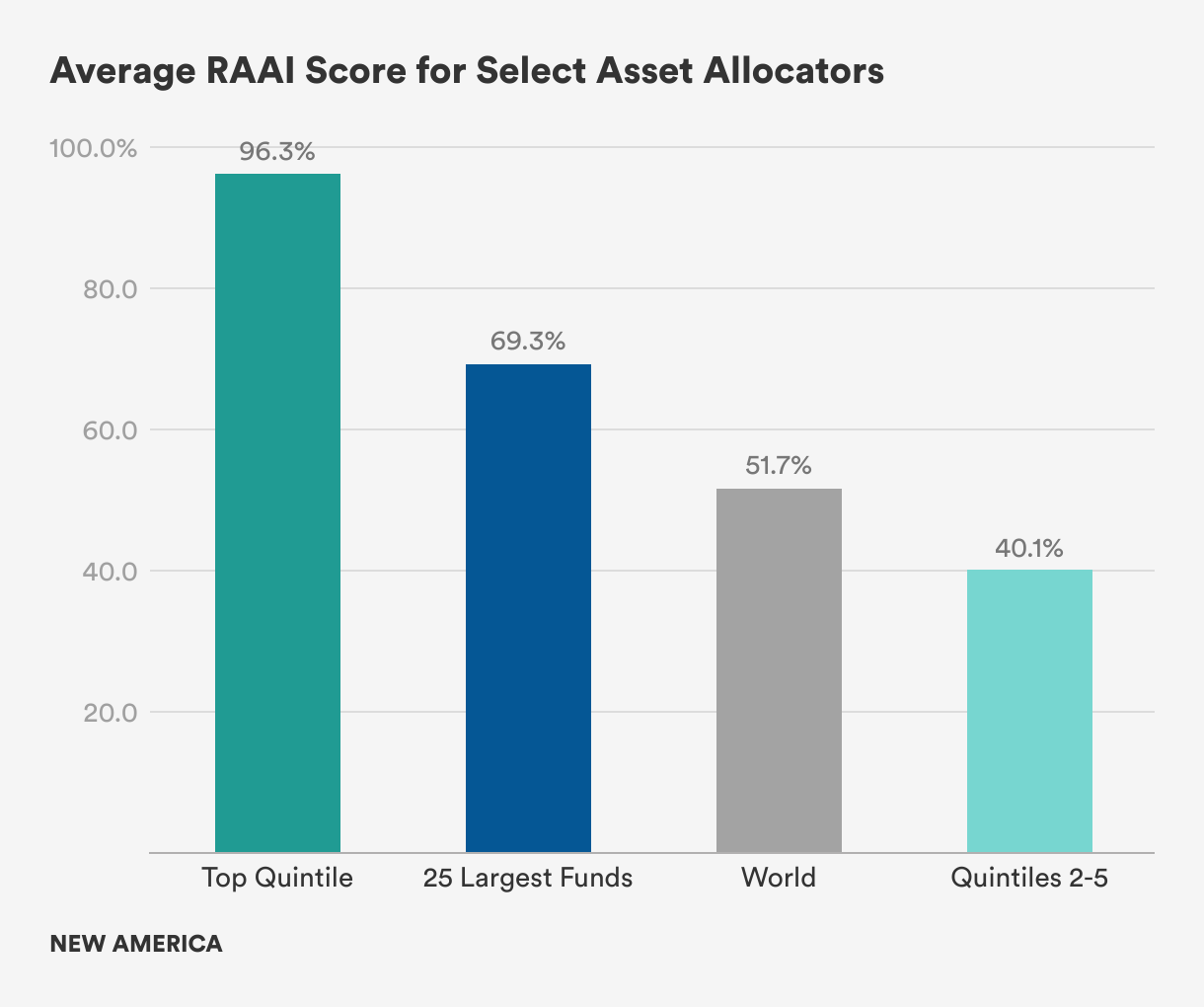 The Responsible Asset Allocator Initiative (RAAI) is focused on mobilizing capital from the world’s largest asset allocators toward responsible investing and the achievement of the United Nations’ Sustainable Development Goals (SDG). The RAAI Index analyzes how the world’s largest long-term investors, including sovereign wealth funds (SWF) and government pension funds (GPF), are developing strategies to manage critical environmental, social, and governance (ESG) issues along 10 core principles and 30 detailed criteria.
