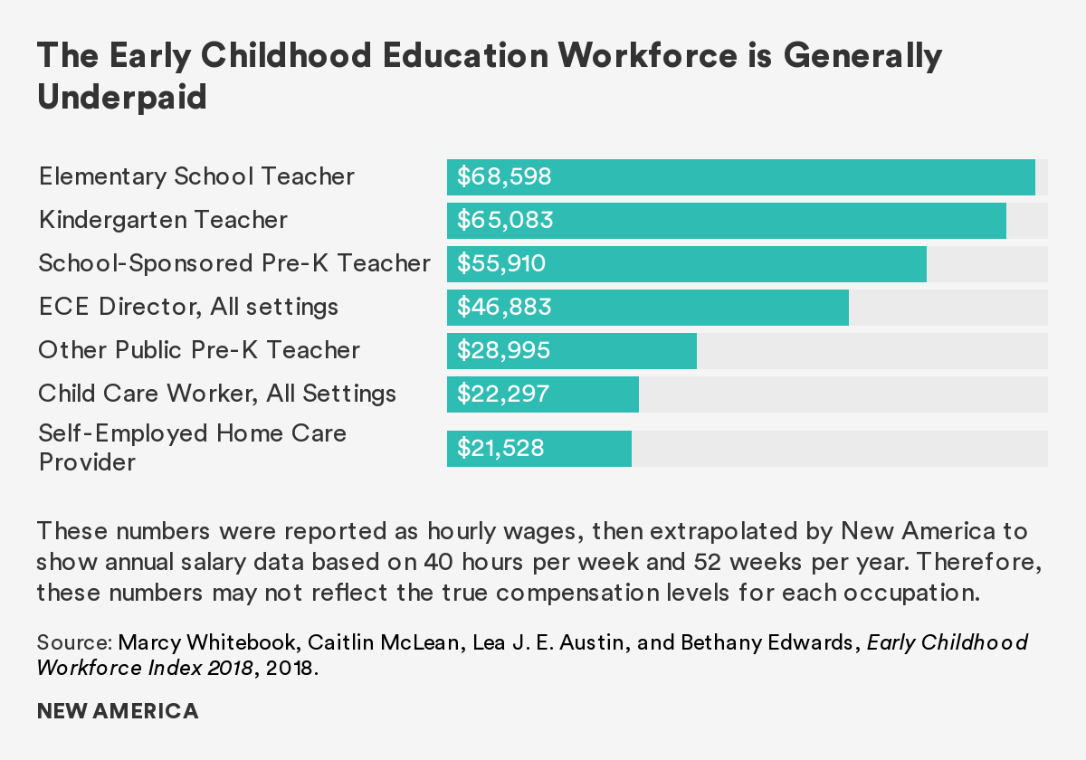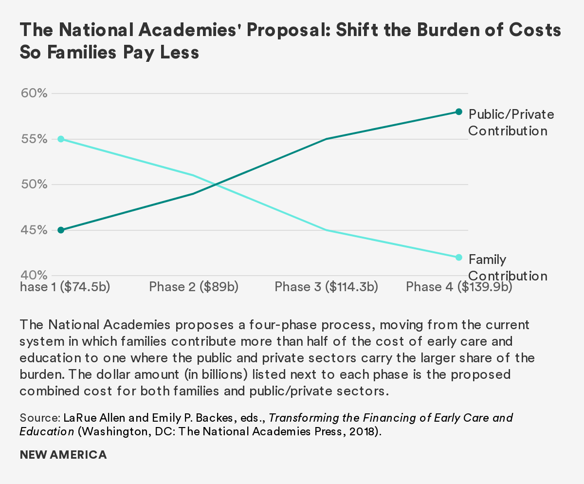 In 2018, the National Academies of Science, Engineering, and Medicine published that new vision in its Transforming the Financing of Early Care and Education (birth through age 5). The Committee on Financing Early Care and Education with a Highly Qualified Workforce puts forth an ambitious vision for financing early care and education (ECE) with a well-prepared and well-compensated workforce. To make the 2015 Transforming the Workforce volume more accessible, New America produced Transforming the Early Education Workforce: A Multimedia Guidebook.