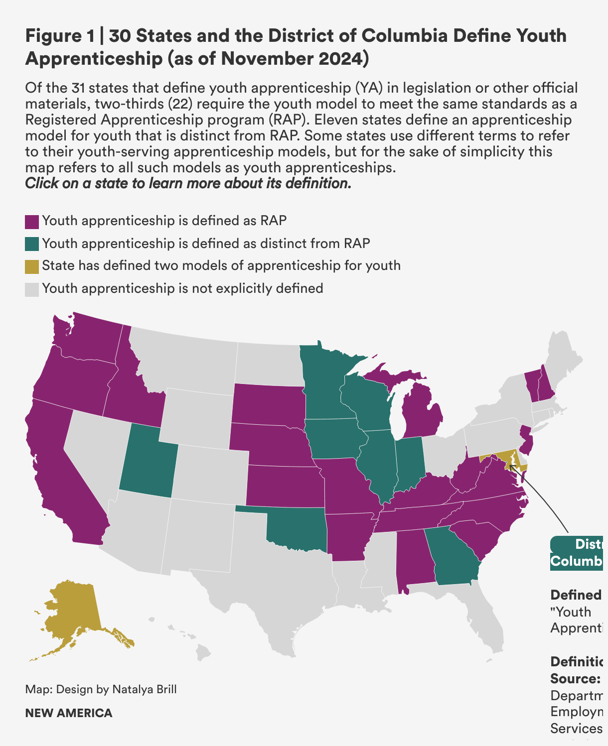 30 states and DC have defined a youth model of apprenticeship—but definitions vary widely, even on basic apprenticeship components.