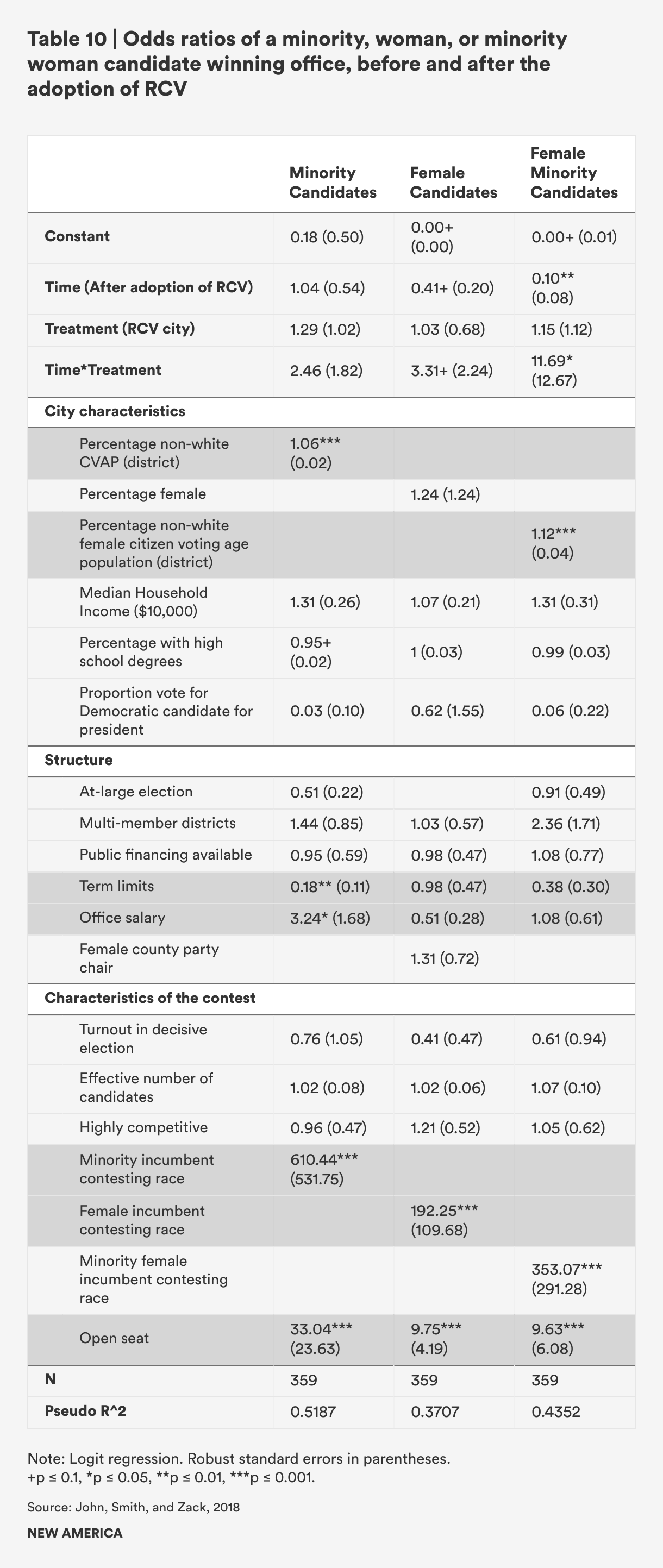 - Sarah John, Haley Smith, and Elizabeth Zack, “The Alternative Vote: Do Changes in Single‐Member District Voting Systems Affect Descriptive Representation of Women and Minorities?,” Electoral Studies 54 (May 2018): 90‐102; Courtney Lamendola and Cynthia Richie Terrell, In Ranked Choice Elections, Women WIN (Takoma Park, MD, Represent‐Women, 2020), <a href="<a href="<a href="<a href="source">source">source">source">source">source.