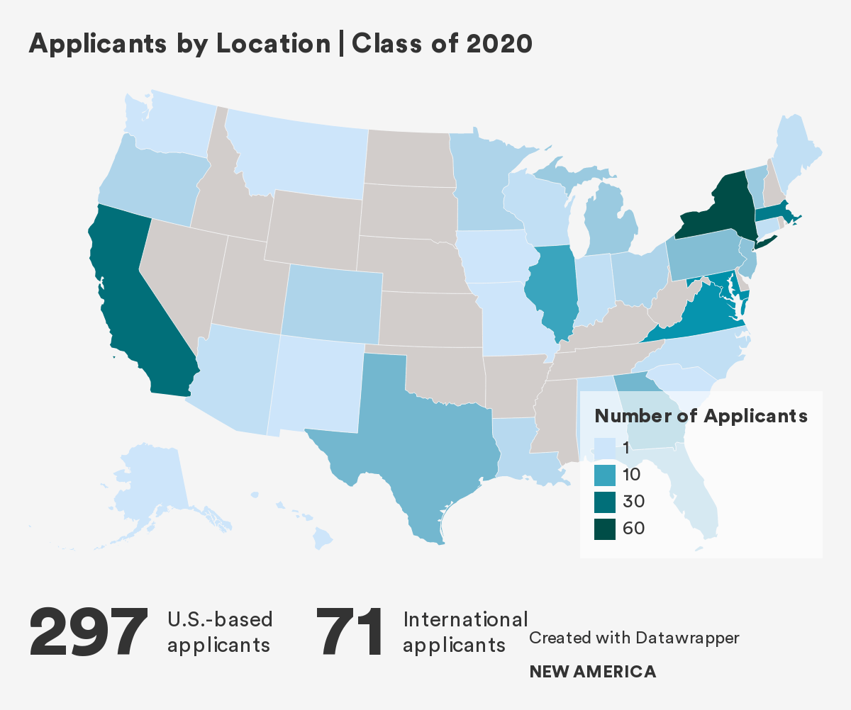 For our Class of 2020, we received 368 applications and awarded 15 fellowships (a 4 percent acceptance rate). Here are some observations about the Class of 2020 candidate pool and how they compare to trends from the applications received for the classes of 2017-2019.