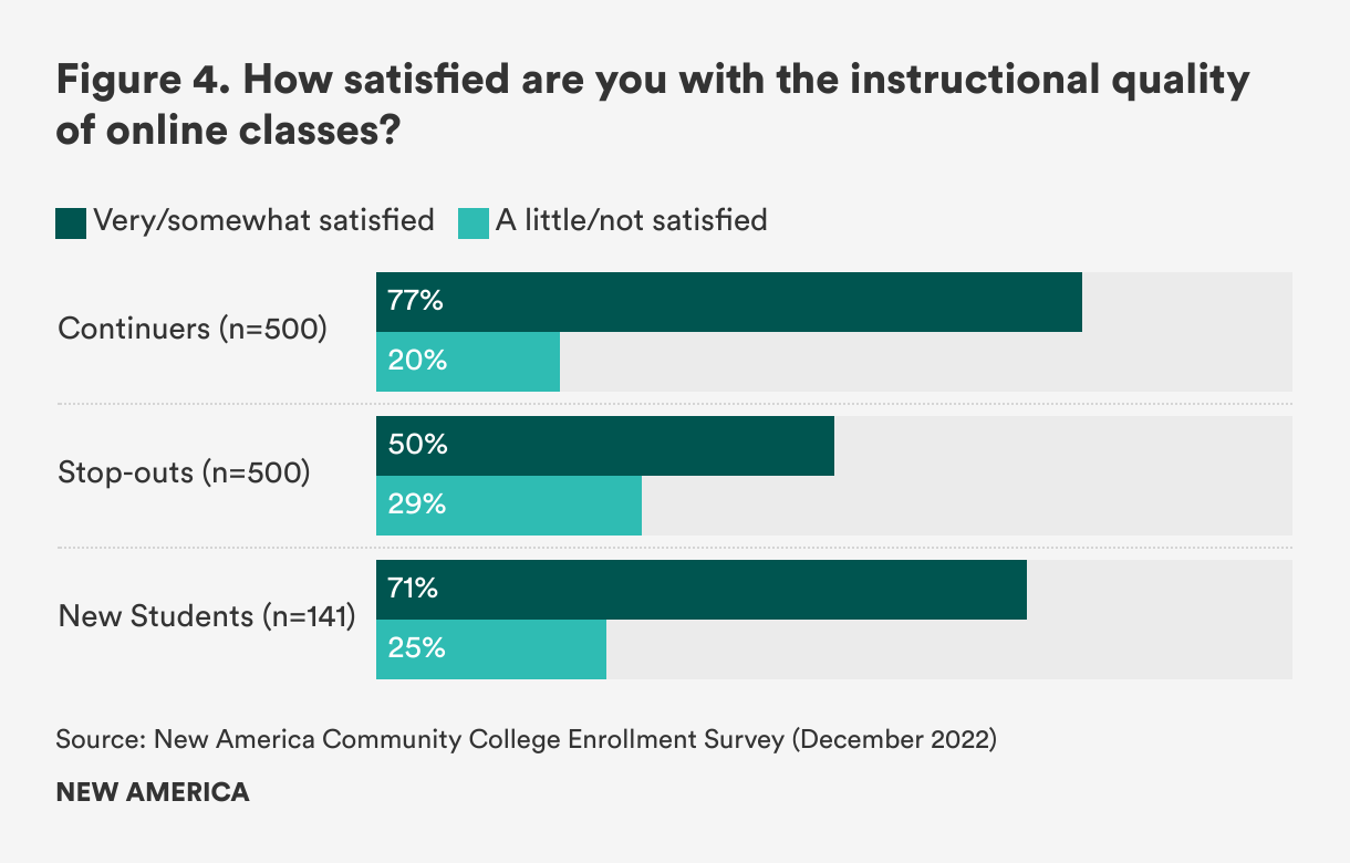 Finding 3. Stop-outs and enrolled students feel very differently about online learning quality