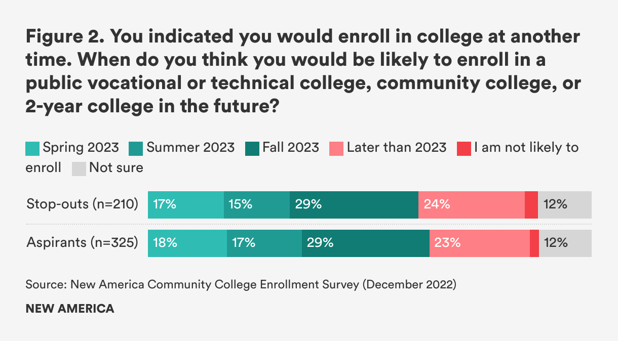 Finding 2. Stop-outs and aspirants are stuck and aren’t planning to enroll anytime soon
